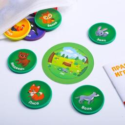 Раздайте каждому игроку по игровому полю. Фишки сложите в мешочек и тщательно потрясите, чтобы они перемешались. А теперь осталось только вытягивать их из мешочка по одной! Тот, кому подходит это животное, забирает фишку и кладёт на любое место своего поля. Победителем станет тот, кто первым соберёт 5 фишек зверей.