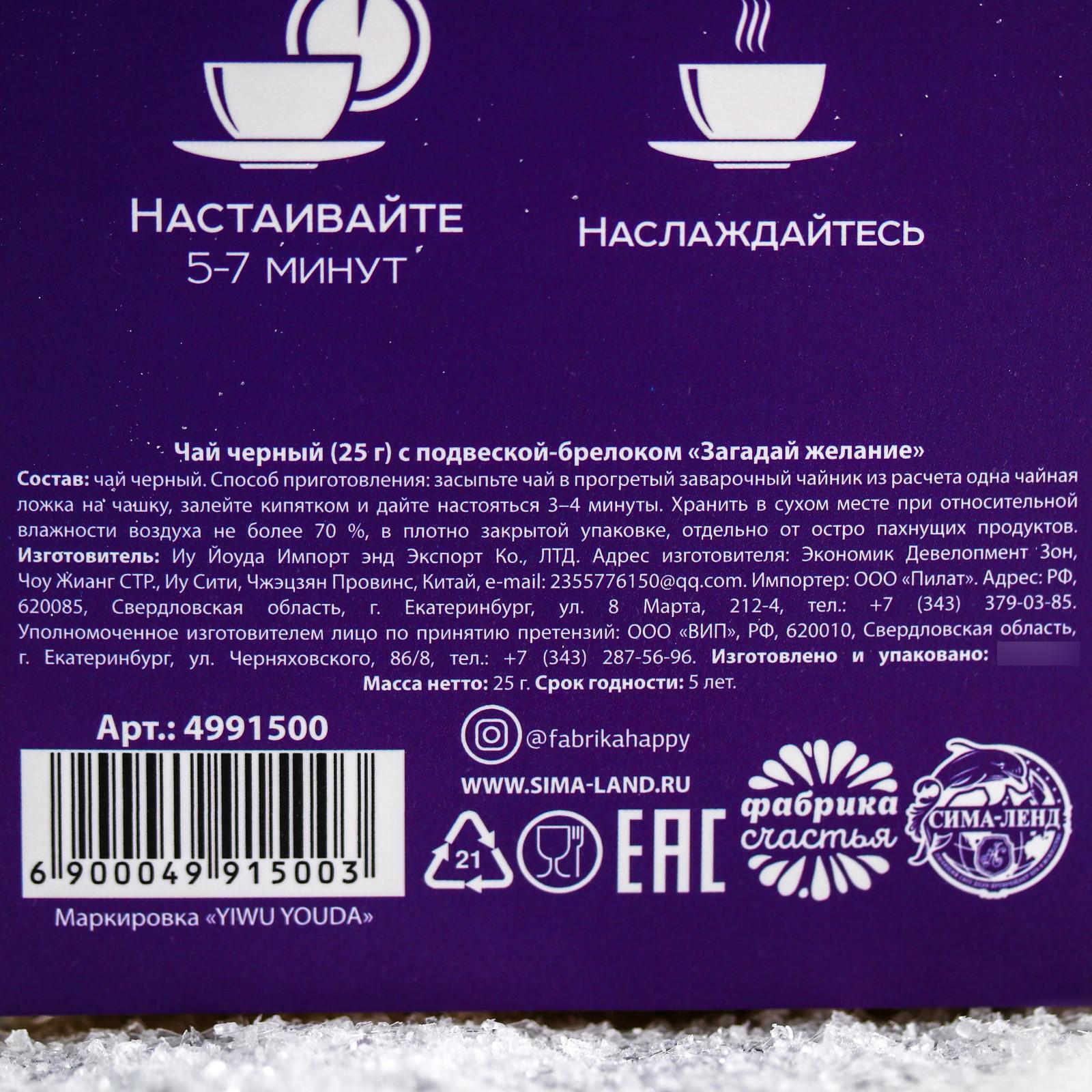 Чай чёрный «Загадай желание»: с брелоком-подвеской, чай 25 г 4991500