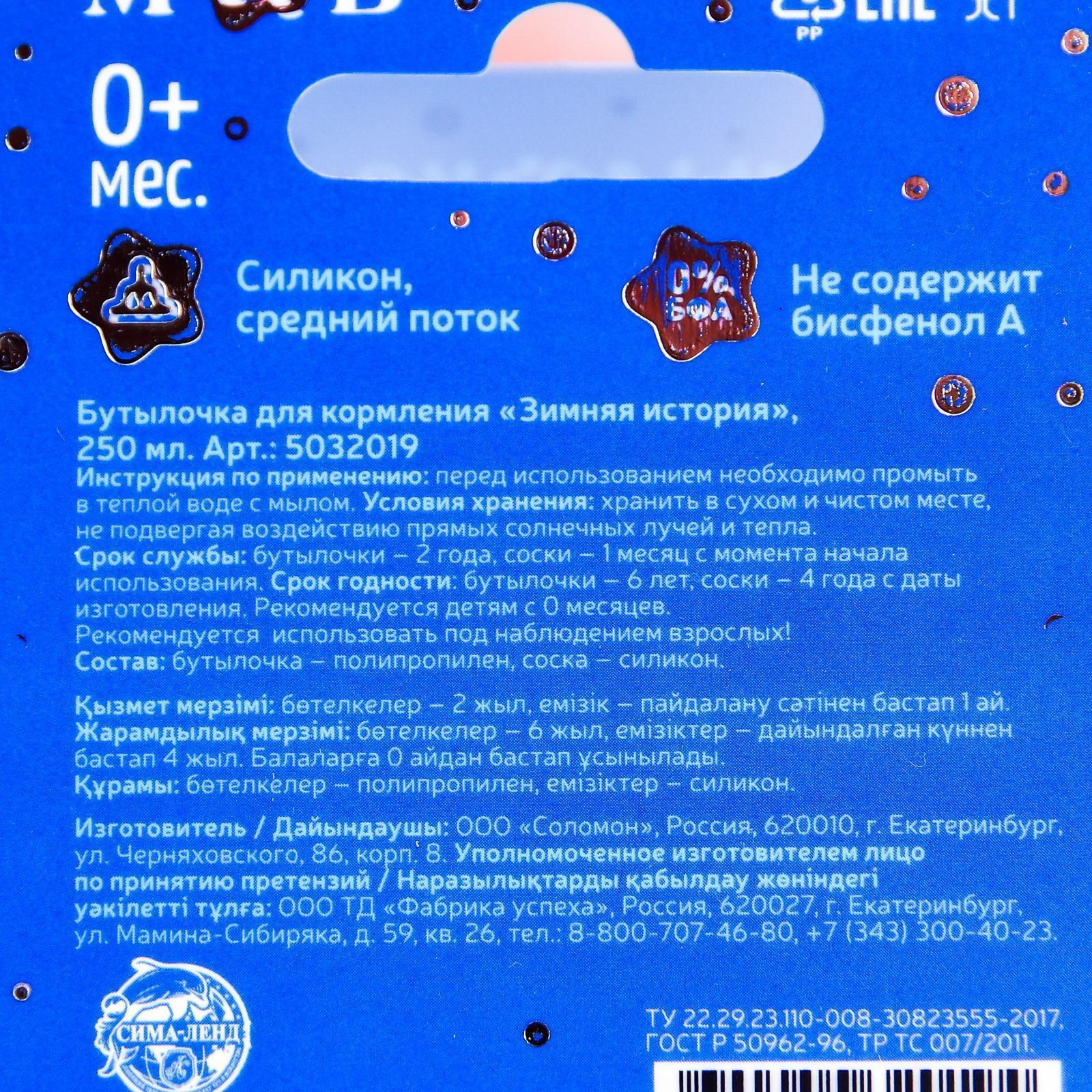 Бутылочка для кормления "Зимняя история" 250 мл цилиндр, с ручками 5032019