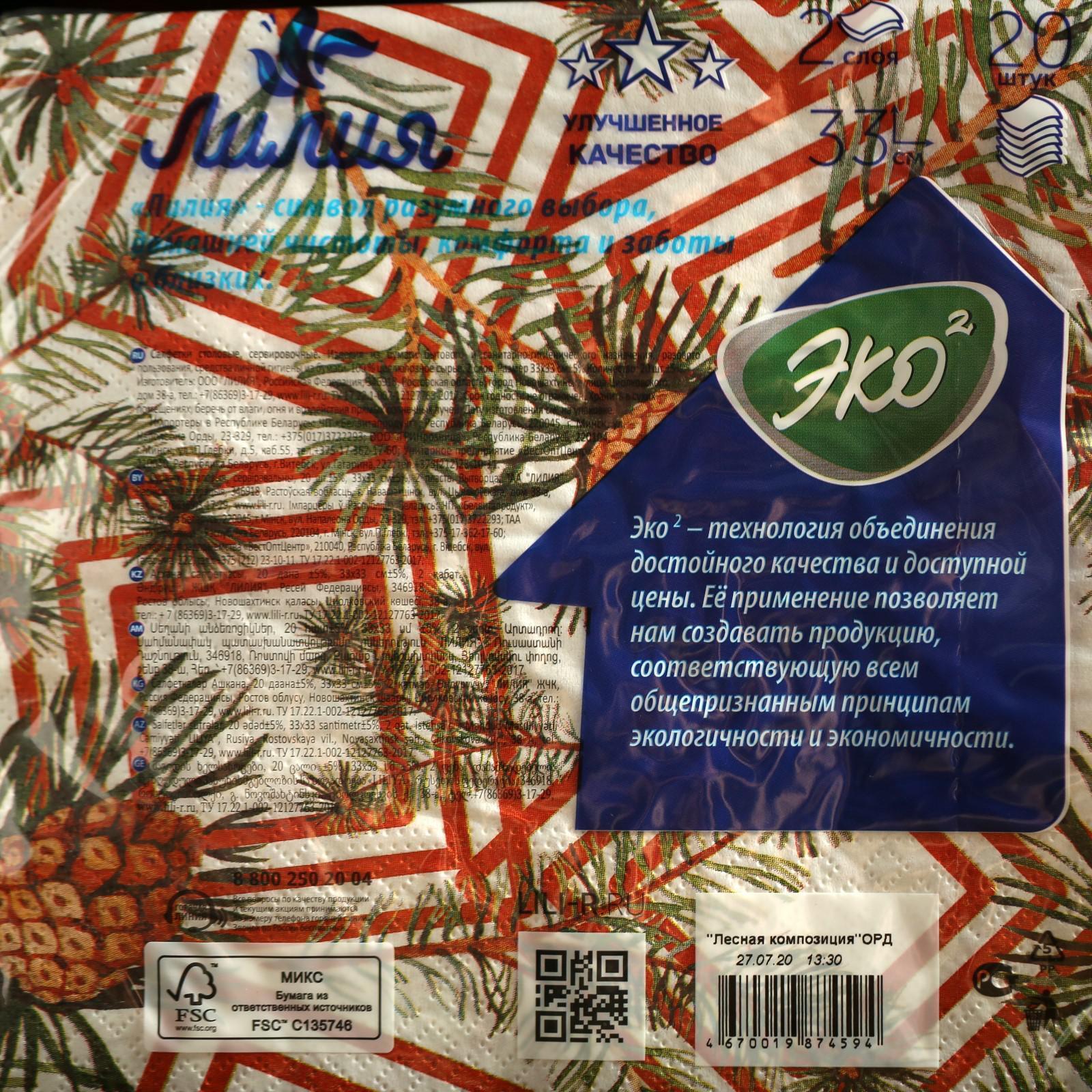 Салфетки бумажные Лилия 33х33 "Лесная композиция" ОРД 2сл 20л, Лесная композиция 5378257