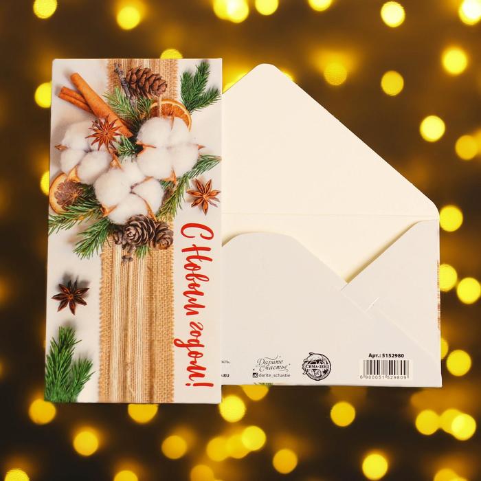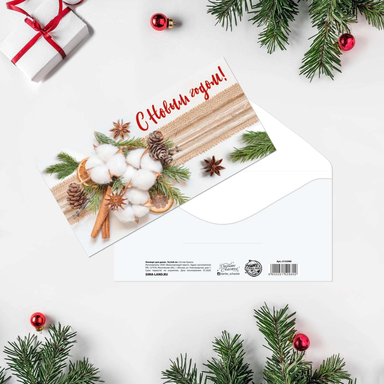Конверт для денег "С Новым Годом!" лента, шишки, елка, 16,5 х 8см 5152980