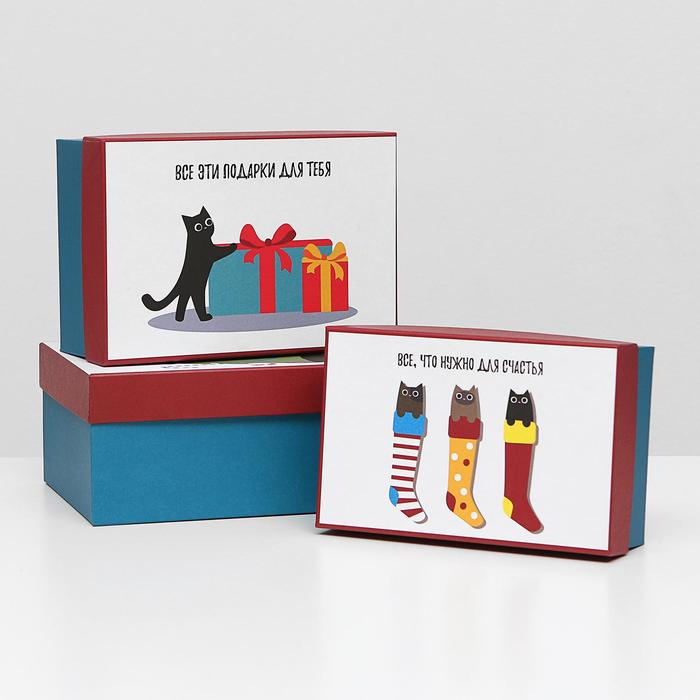 Набор коробок 3 в 1 "Новогодний кот", 23 х 16 х 9,5 - 19 х 12 х 6,5 см 5370674