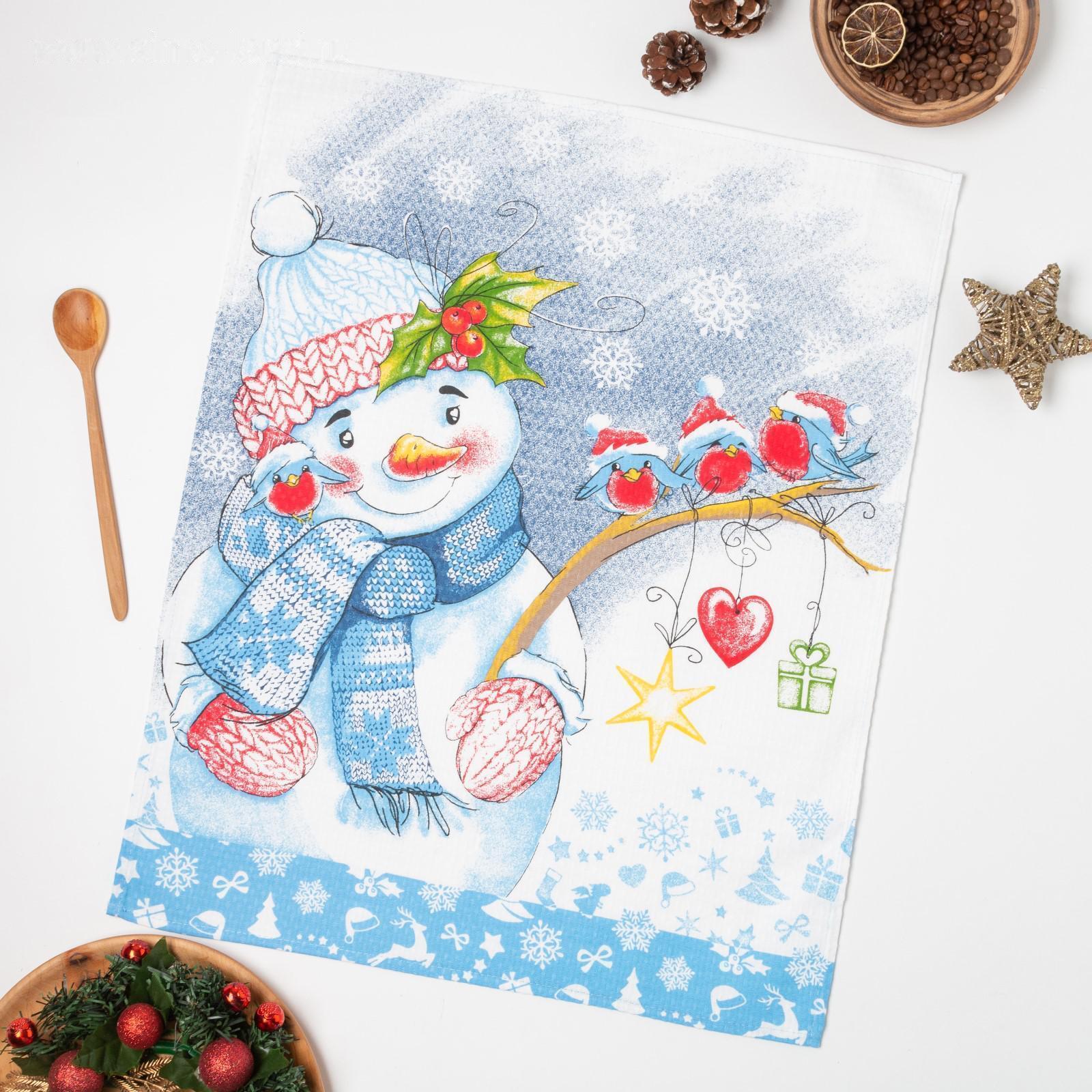 Полотенце вафельное Снеговик 1 47х60 см, хлопок 100%, 185г/м2 5171115