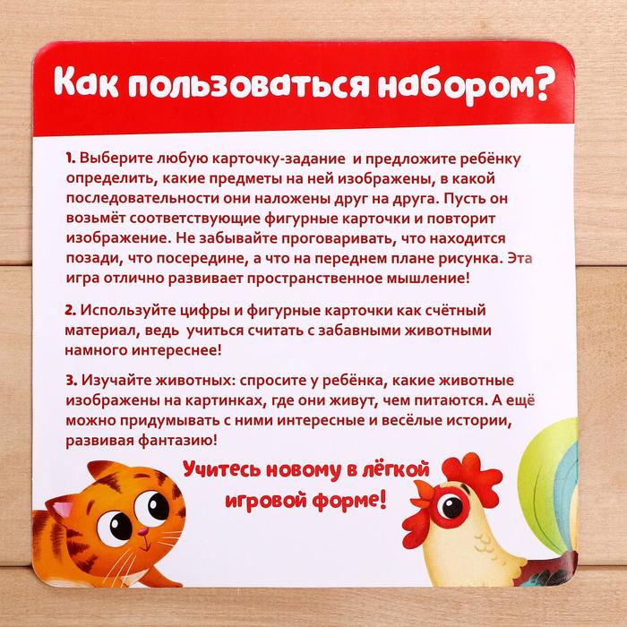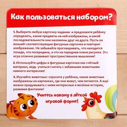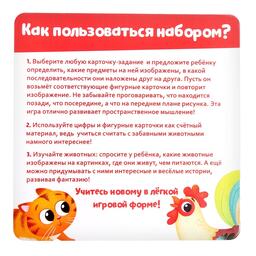 Развивающий набор поможет ребёнку легко и быстро освоить понятия «над», «под», «между», «за» и другие. Также малыш научится располагать предметы относительно друг друга в пространстве и познакомится с животными, запомнит их названия. И с лёгкостью пересчитает всех зверюшек.