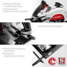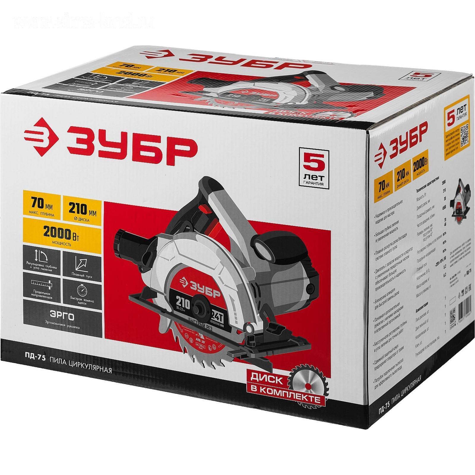 Пила дисковая "ЗУБР" ПД-75, 2000 Вт, 4500 об/мин, диск 210х30 мм 5385046