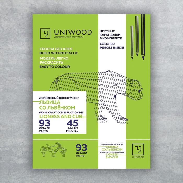 Деревянный конструктор "Львица со львёнком", с набором карандашей 5289785