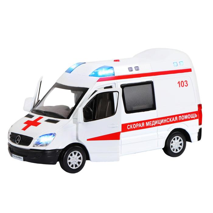 Машина металлическая «Mercedes Sprinter. Скорая помощь» 1:32, инерция, цвет белый, световые и звуковые эффекты 5354104