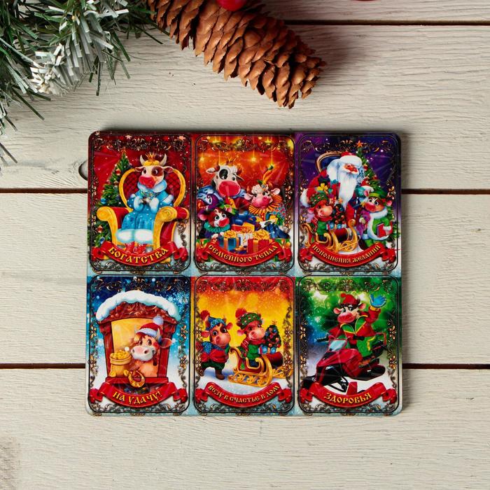 Магнит новогодний деревянный "Символ 2021. Шестёрка №1", с голографией, 6×4 см МИКС 5245517