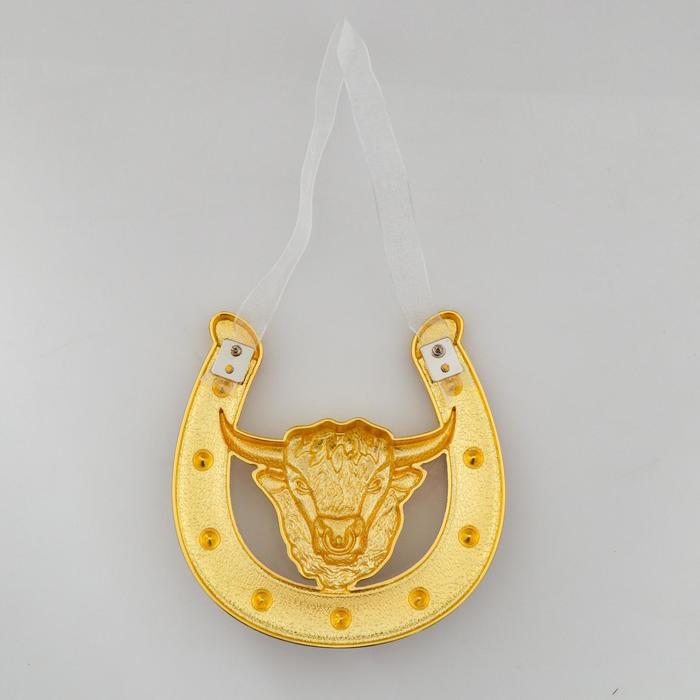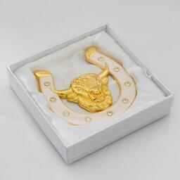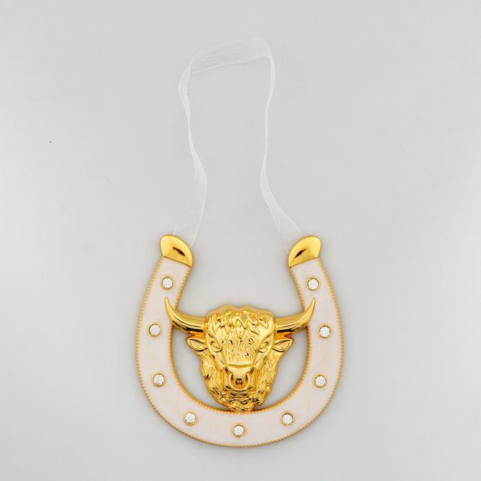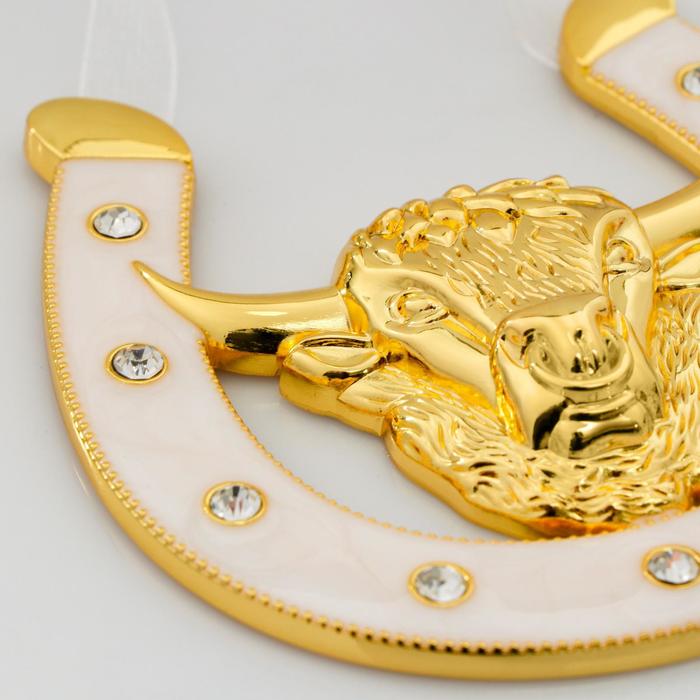 Сувенир-подкова "Бык золотой" с эмалью и стразами, подвесная, 10х0,9х10,5см. 5350022