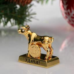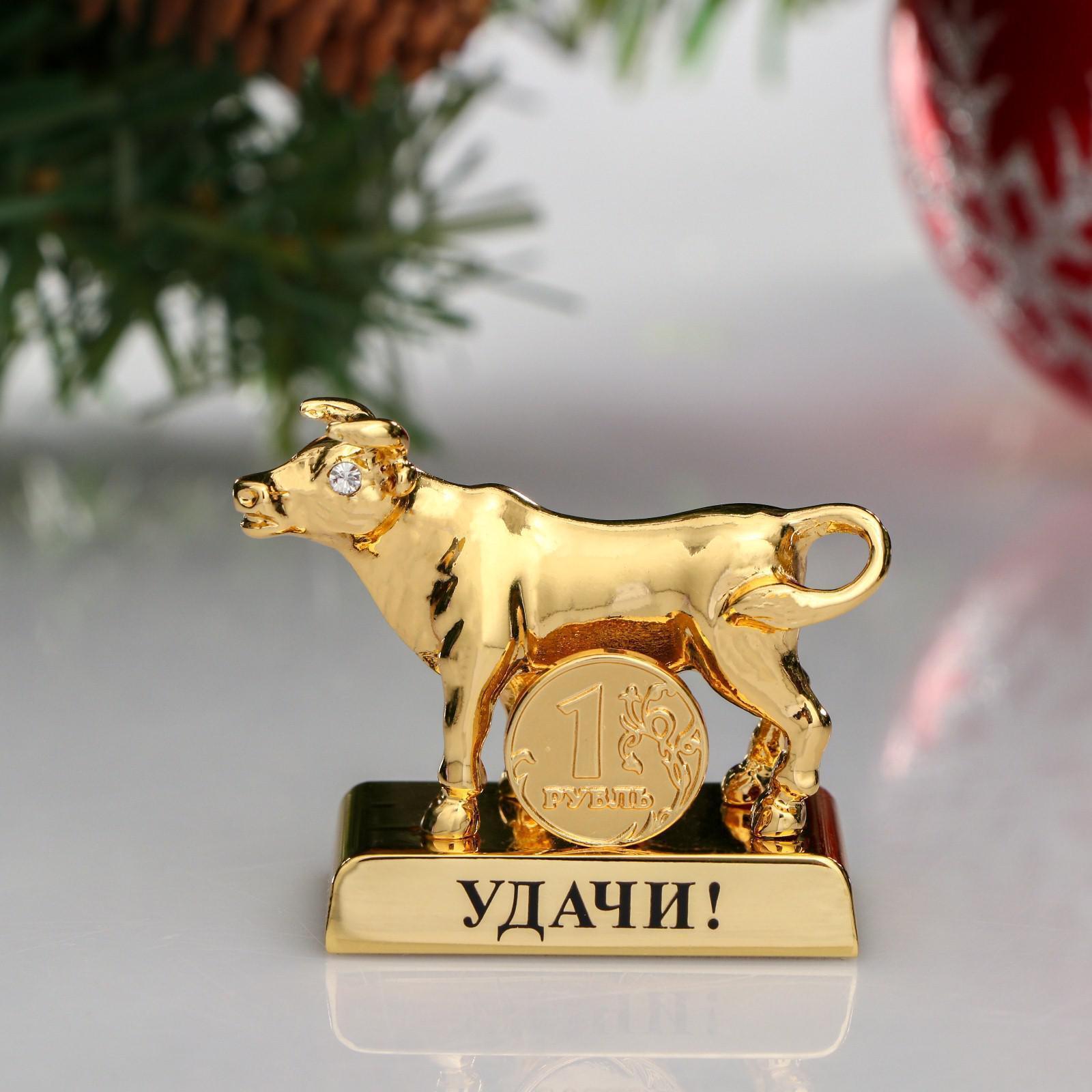 Сувенир "Бык" с монеткой и пожеланием удачи, 2 хрусталика Сваровски 5350012