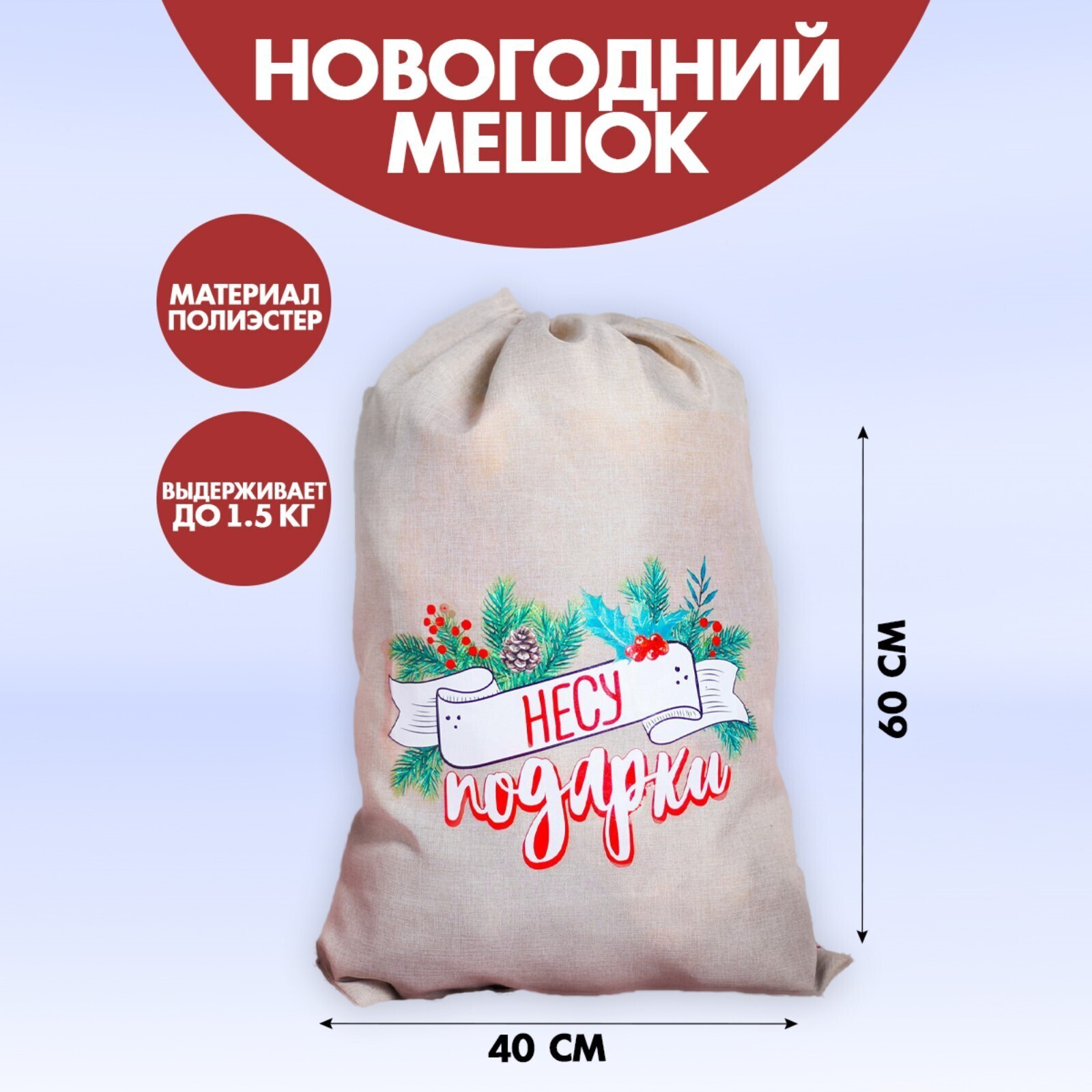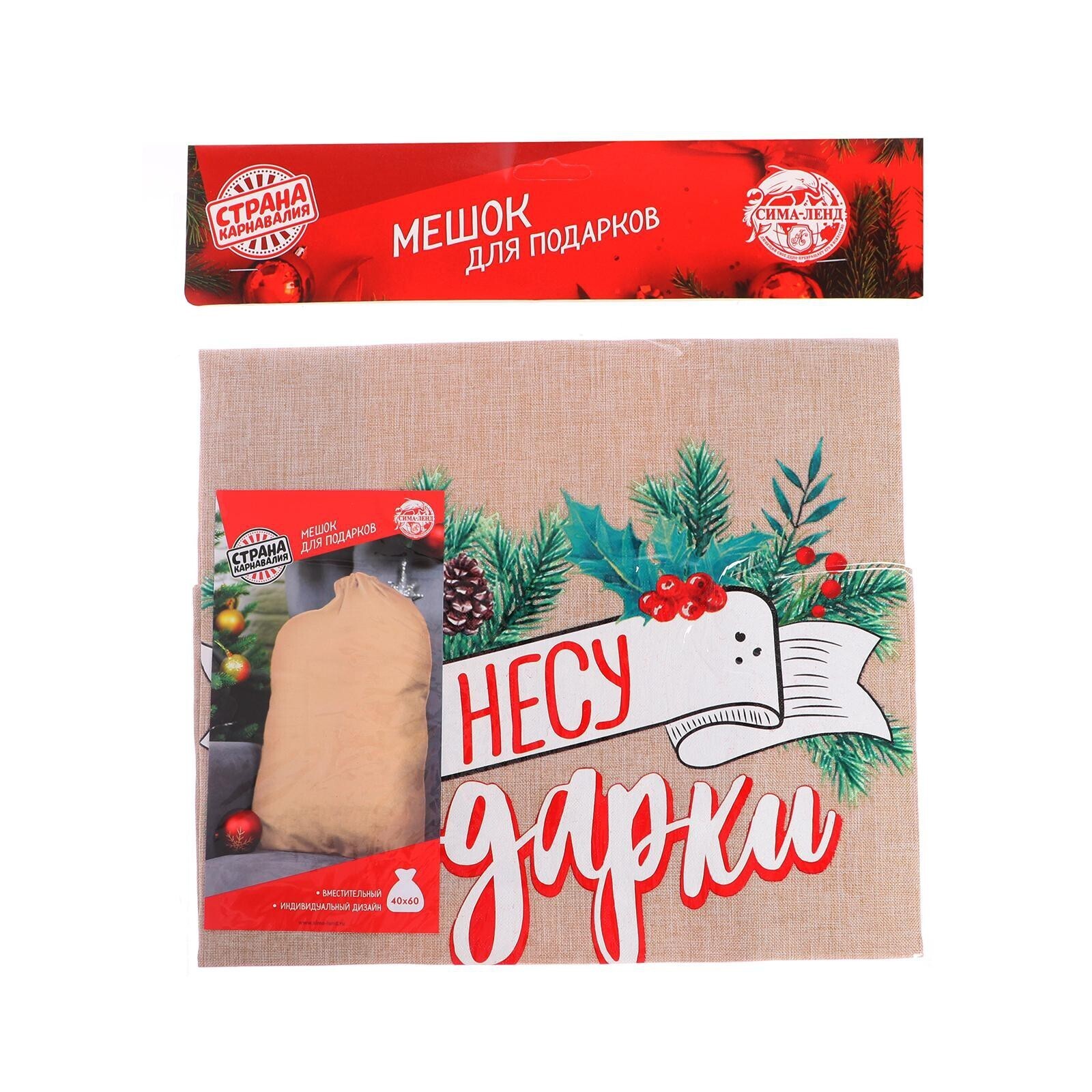 Мешок Деда Мороза «Несу подарки» холщовый, 40х60см 5054529
