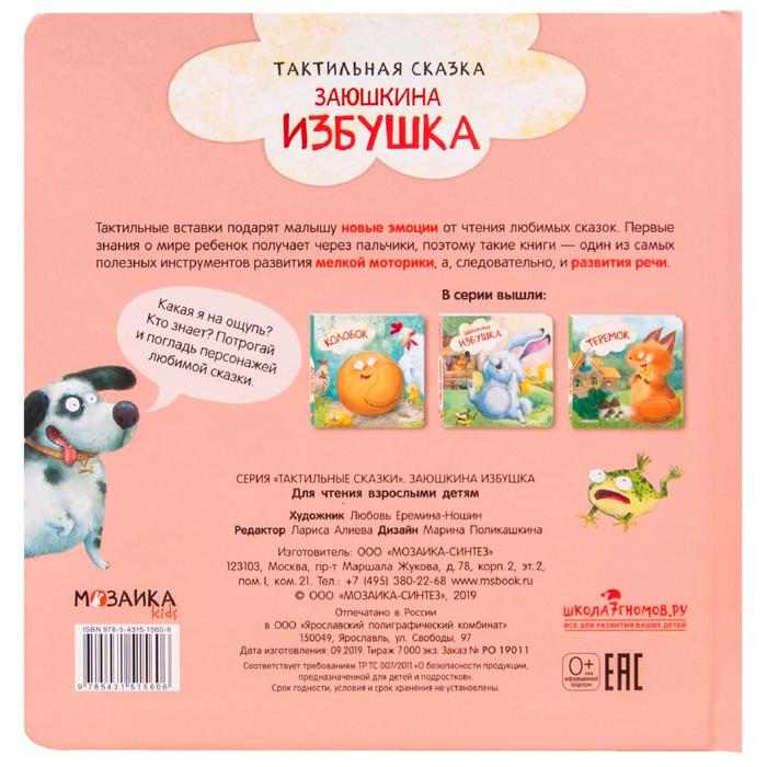 <p>Книга «Заюшкина избушка» из серии «Тактильные сказки» предназначена для развития мёлкой моторики, речи и эмоционального интеллекта у самых маленьких. В ней есть все, что так нравится малышам: любимая сказка и добрые иллюстрации с мягкими тактильными вставками. Ребёнок сможет погладить зайчика, собаку, петуха и других героев русской народной сказки «Заюшкина избушка».</p><p>Книга из серии «Тактильные сказки» будет отличным подарком даже для самого маленького читателя и обязательно станет любимой.</p>