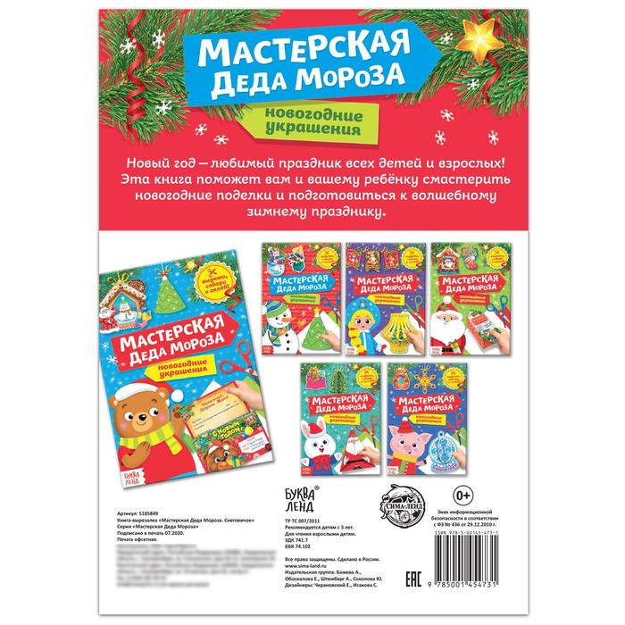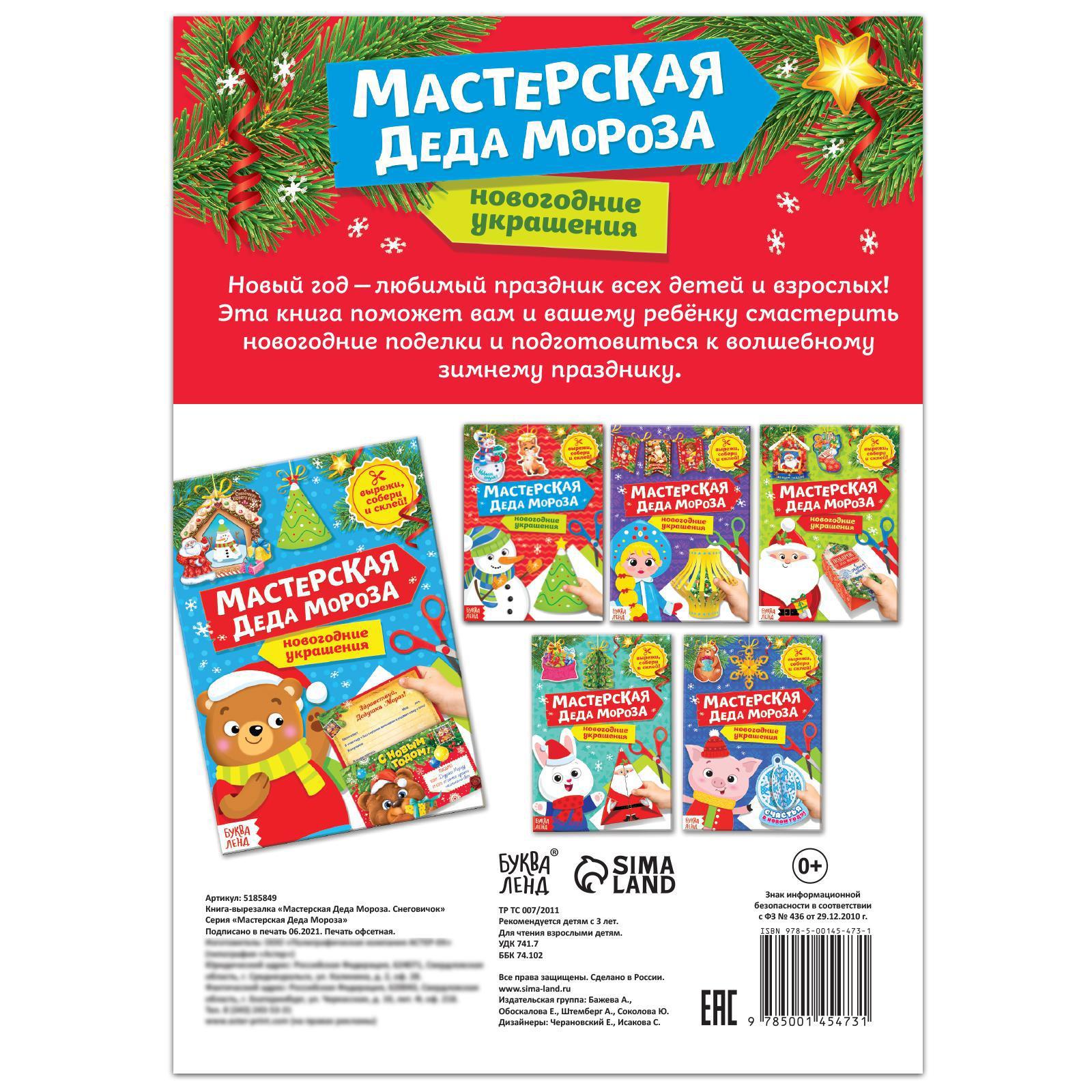 Книга-вырезалка «Мастерская Деда Мороза. Снеговик» 20 стр. 5185849