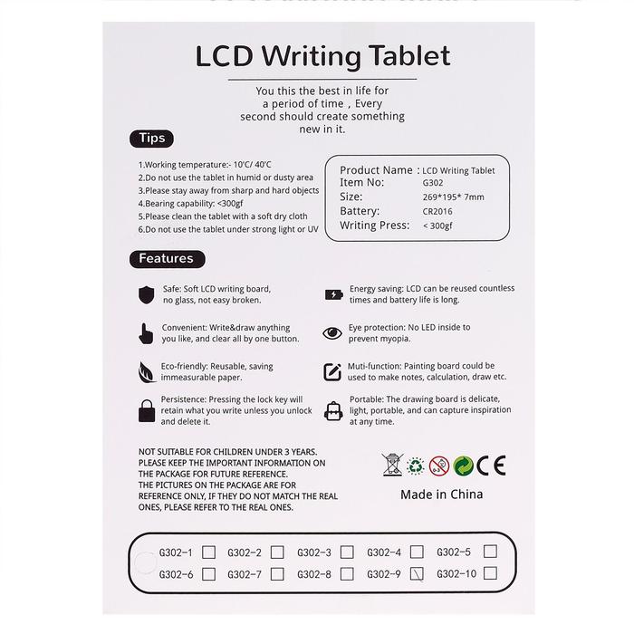 Планшет для рисования LСD, одноцветный рисунок 27 × 19 см, с ручкой 5100897
