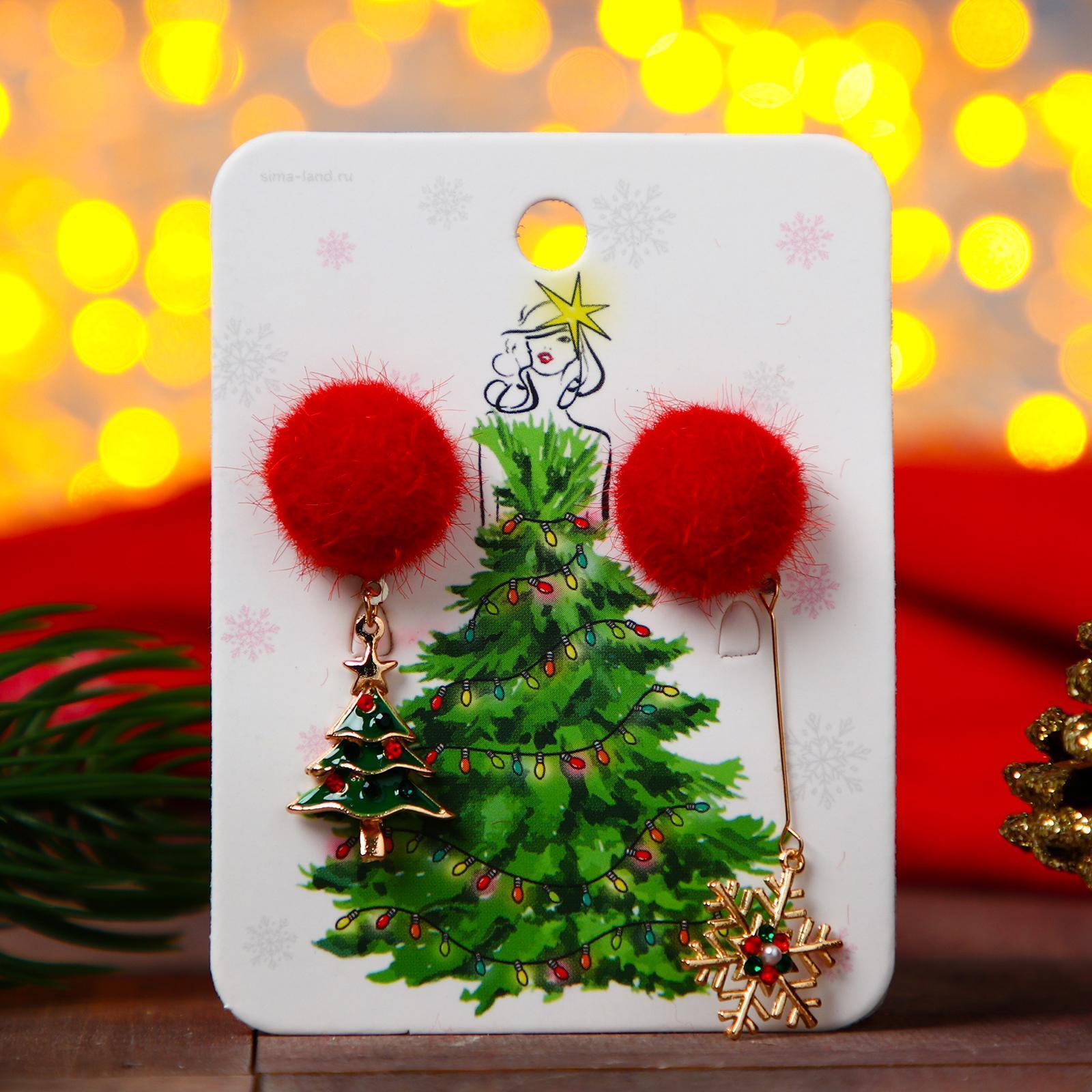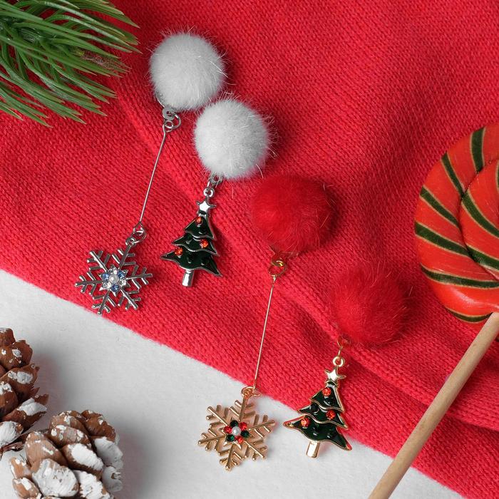 Серьги "Новогодние пушистые" елка и снежинка, цвет МИКС 4964975