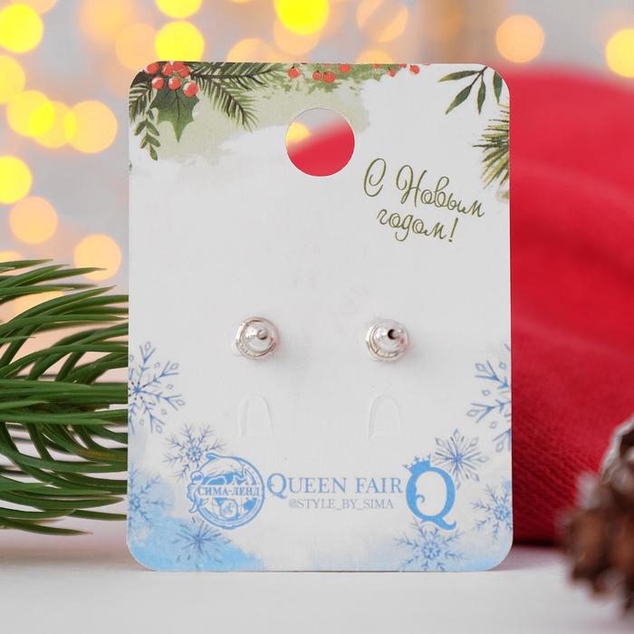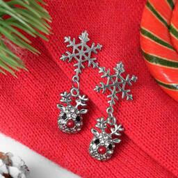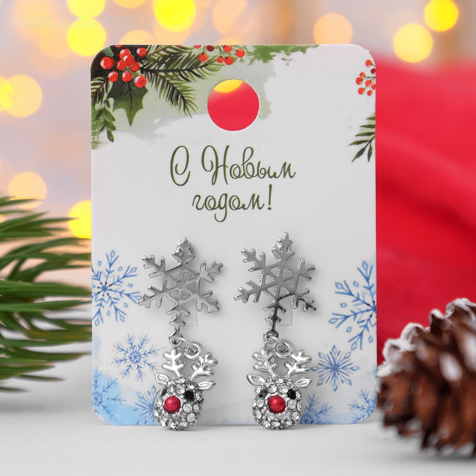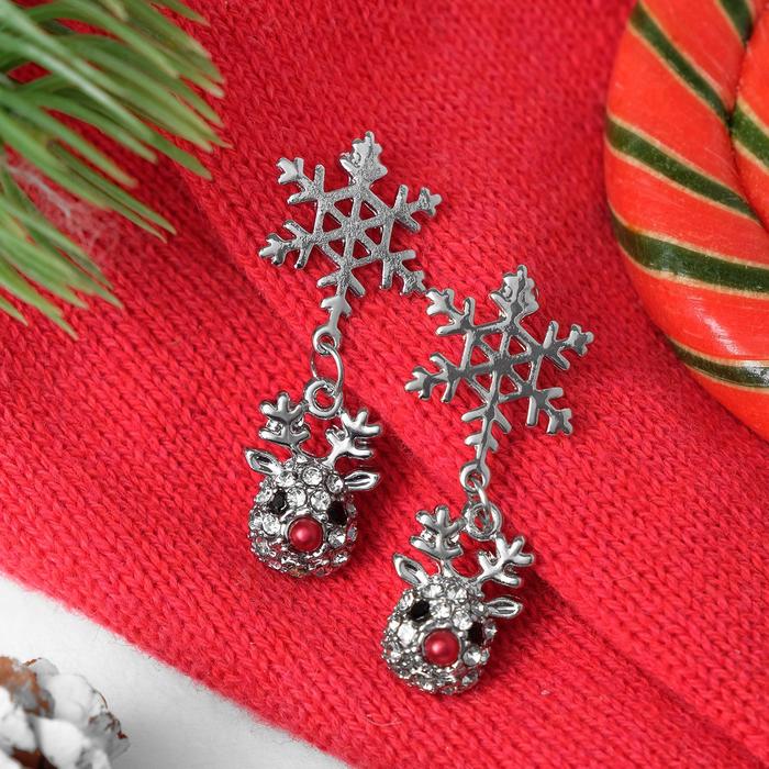 Серьги "Новогодние" оленята, цвет бело-красный в серебре 4964970