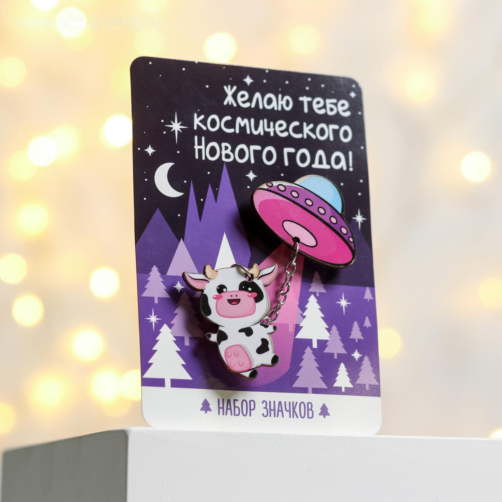 Набор значков»Желаю тебе космического Нового года», 2 шт 4929926