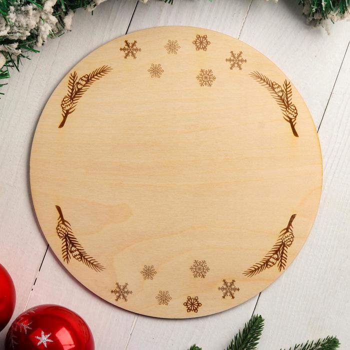 Подставка для торта круглая "Снежинки, ветвь еловая, сплошная гравировка", 26 см 5266791