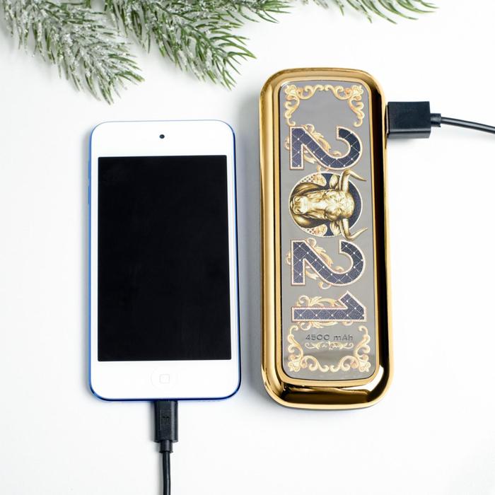 Портативный аккумулятор "2021 бык", 4500 mAh, 3,5 х 13 см 5004624