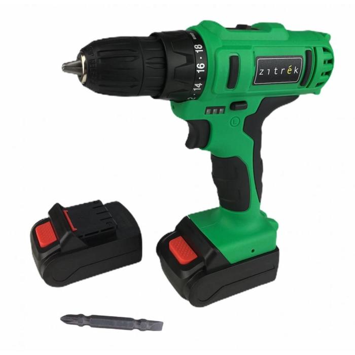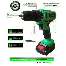 Дрель-шуруповерт Zitrek Greenpower 20-Li, 20 В, 2х1.5 Ач, Li-ion, 400/1400 об/мин, 42 Нм 5364547