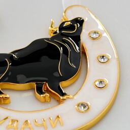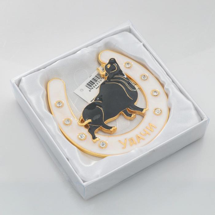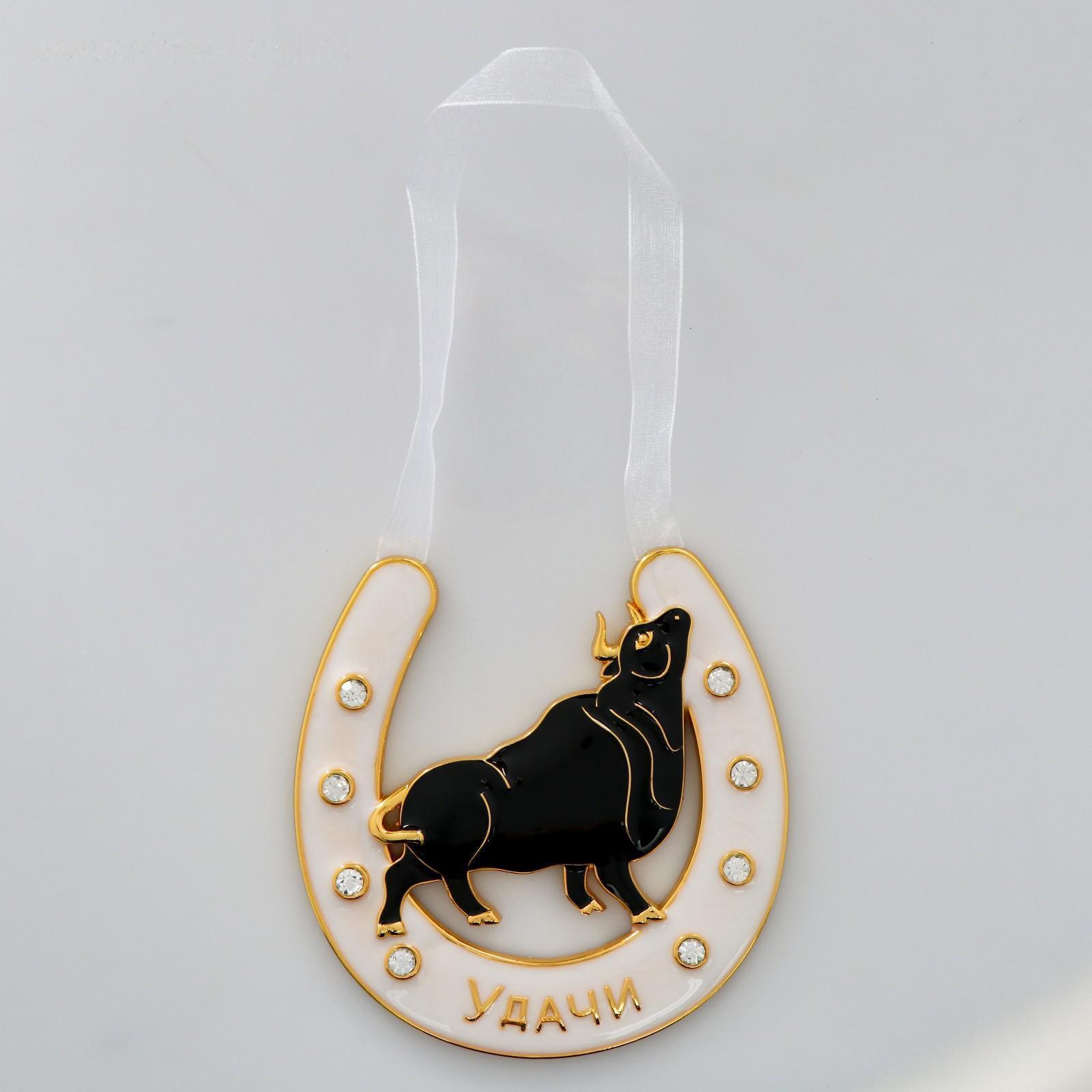 Сувенир-подкова "Черный Бык" с эмалью и стразами, подвесная, 9,6х0,6х10см. 5350026