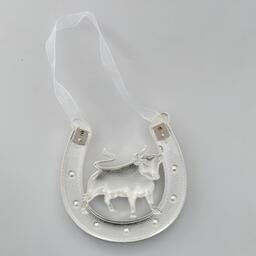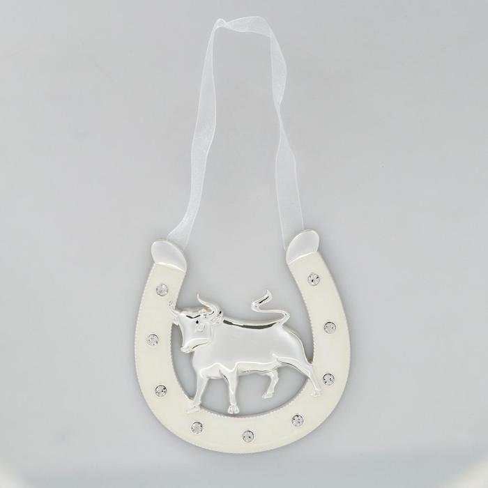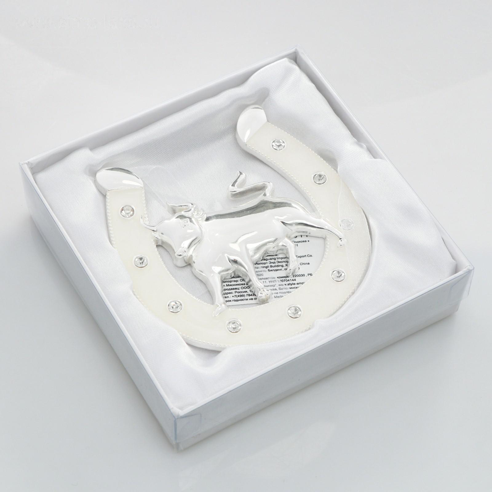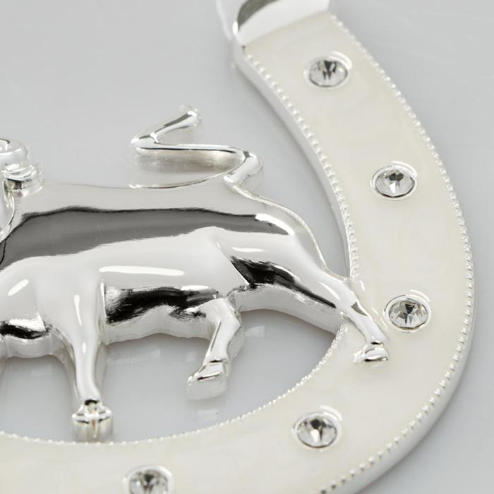 Сувенир-подкова"Бык серебряный" с эмалью и стразами, подвесная, 10,1х0,9х10,2см. 5350021
