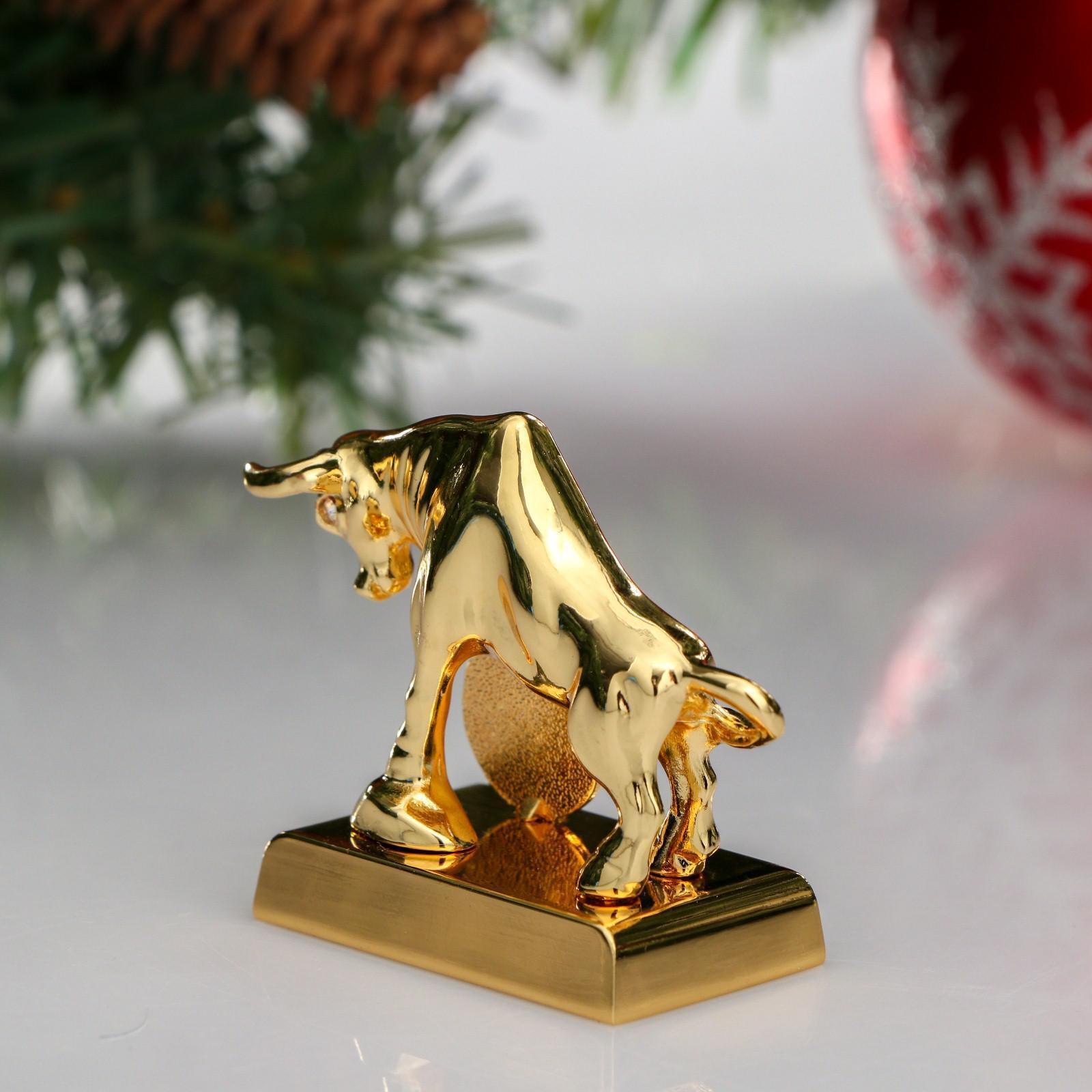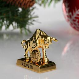 Сувенир "Бык" с монеткой и пожеланием удачи, 2 хрусталика Сваровски 5350016