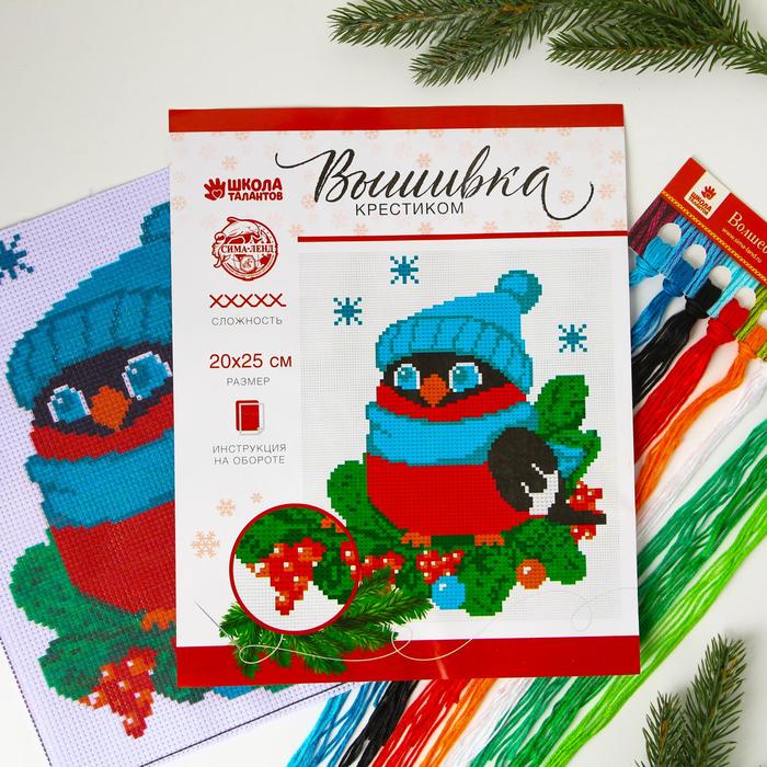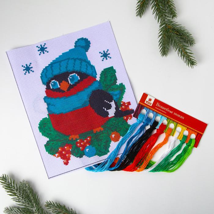 Вышивка крестиком «Снегирь на еловой ветке», 25х20 см 5088633