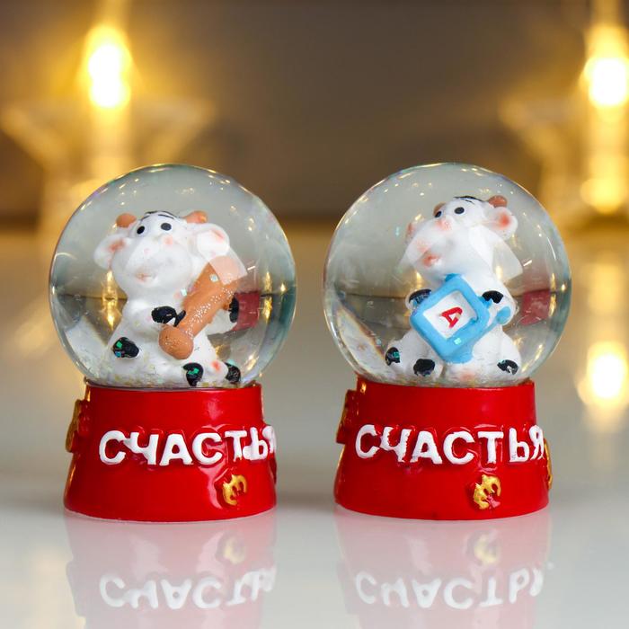 Сувенир полистоун водяной шар "Бычок-малыш" МИКС 6х4,3х4,3 см 5045943