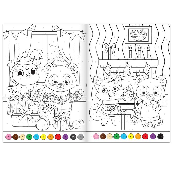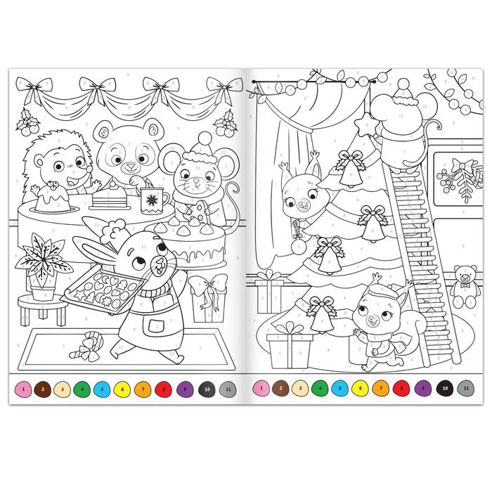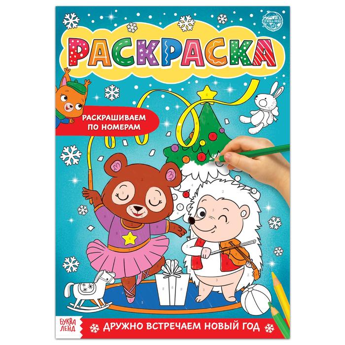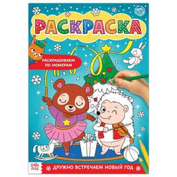 Раскраска по номерам «Дружно встречаем Новый год», 16 стр., формат А4 5215485