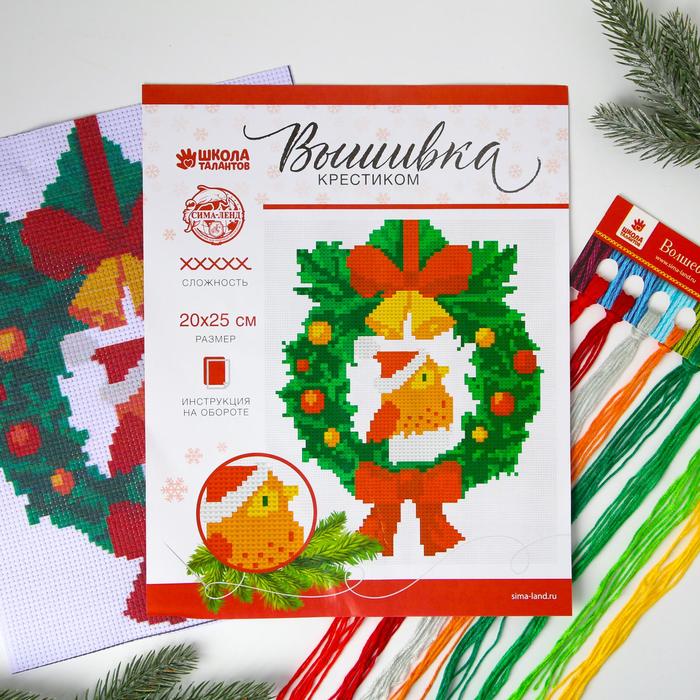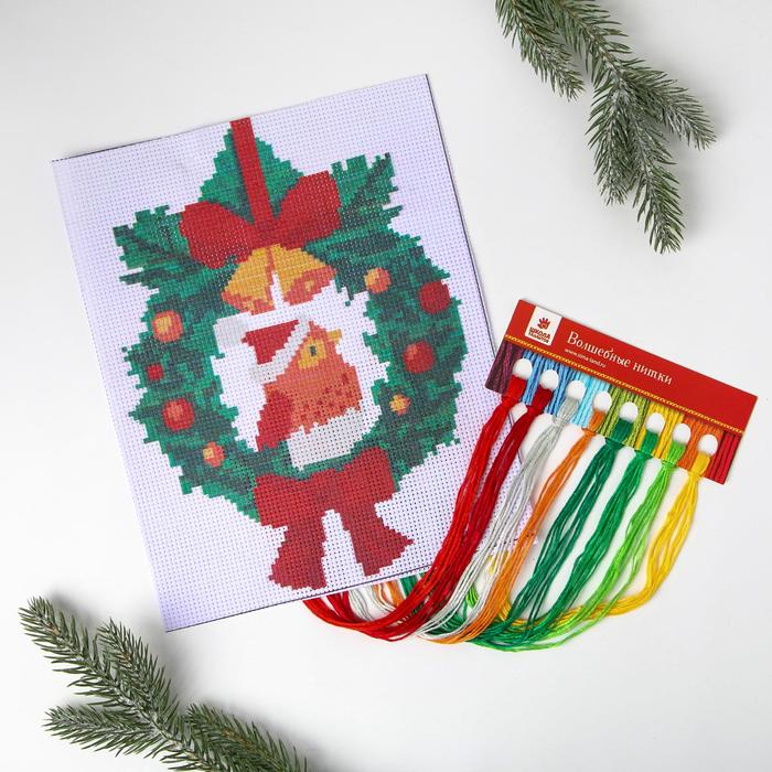 Вышивка крестиком «Птичка на еловом венке», 25х20 см 5088631