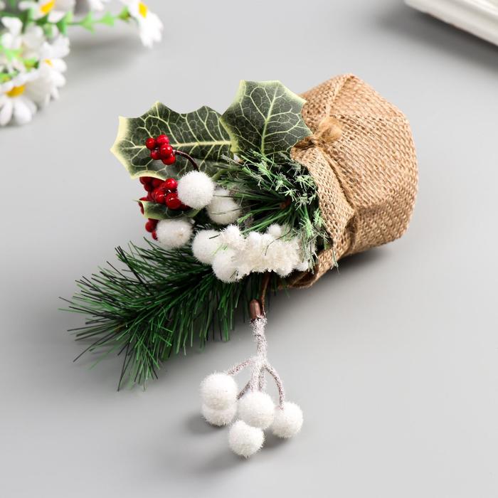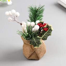 Декоративный букетик "В мешочке" белый с красным 5371195