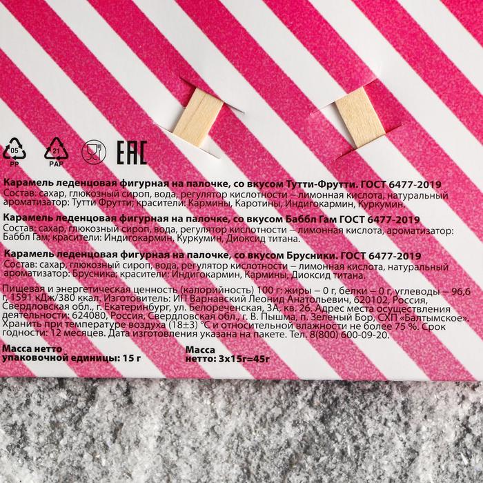 Подарочный набор леденцов на палочке «Рожок»: 15 г х 3 шт. 5136341