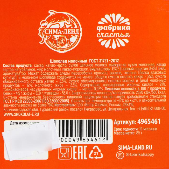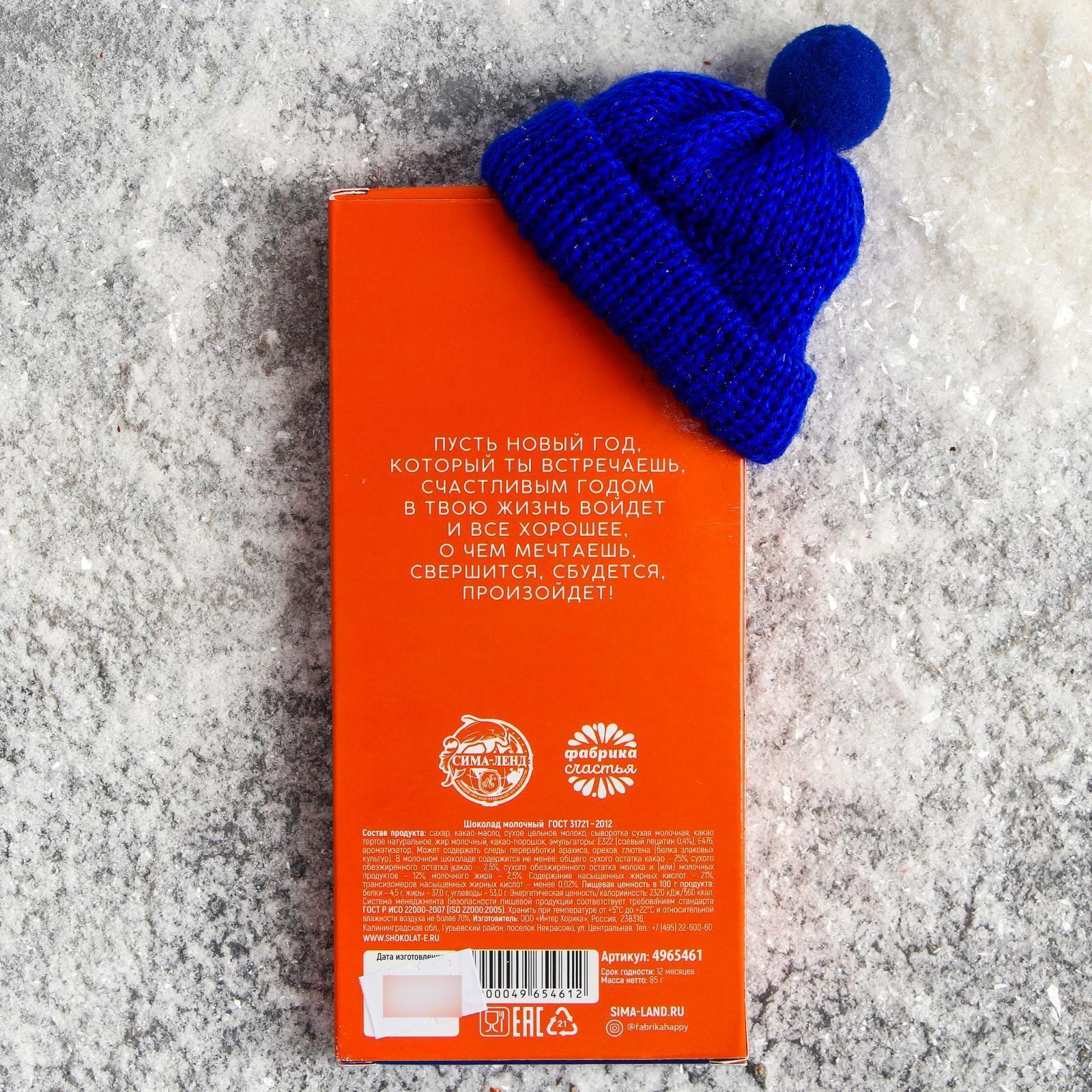 Шоколад молочный «Поздравляю с новым годом»: в шапочке, 85 г 4965461