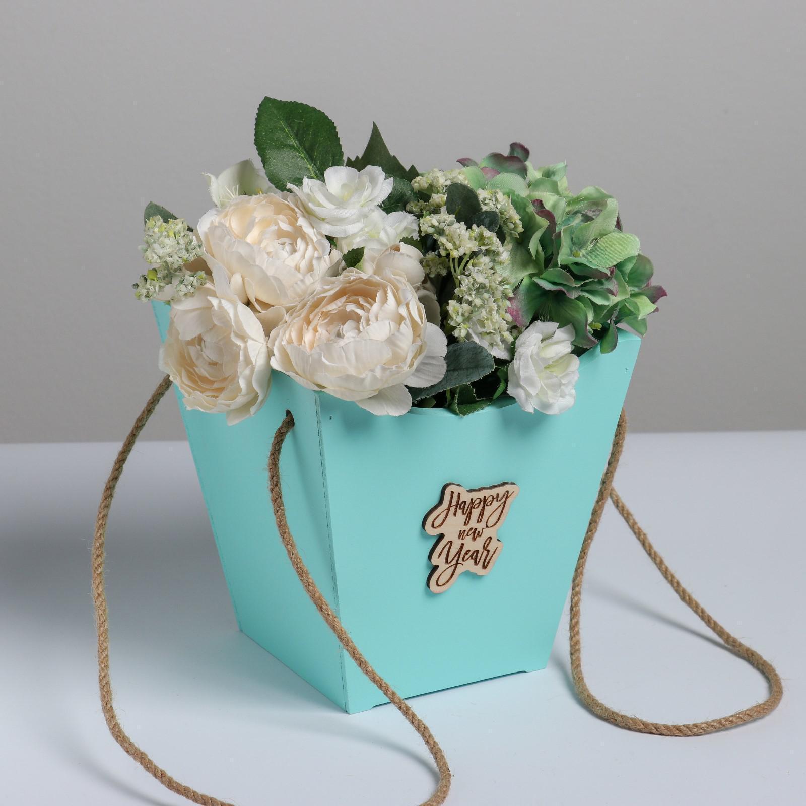Кашпо трапеция с ручками «Happy New Year», 18 × 18 × 18 см 5240398