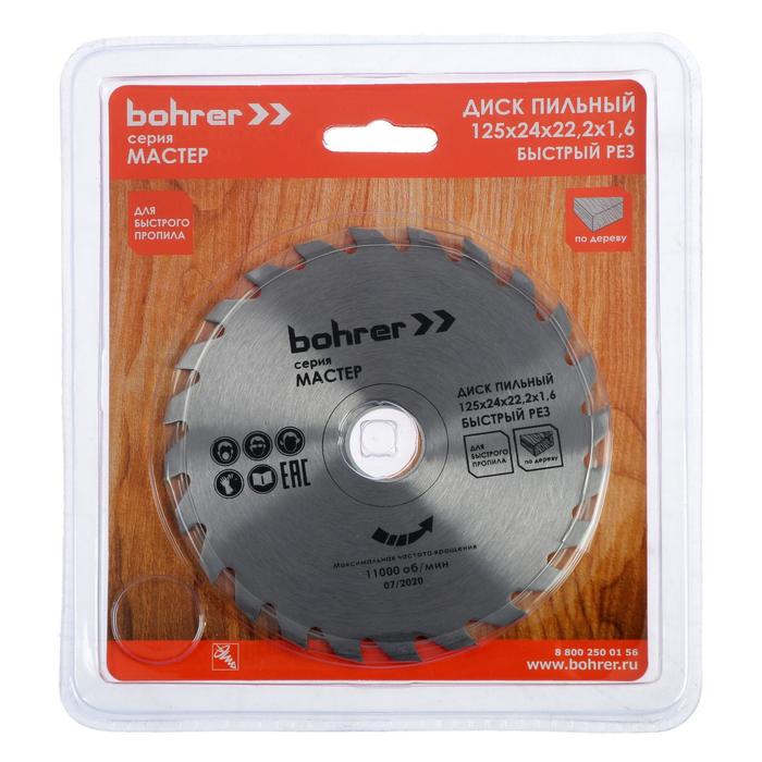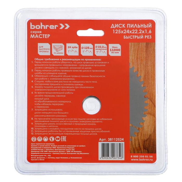 Диск пильный по дереву Bohrer 38112524, 125x24x22.2x1.6 мм, быстрый рез 5300241