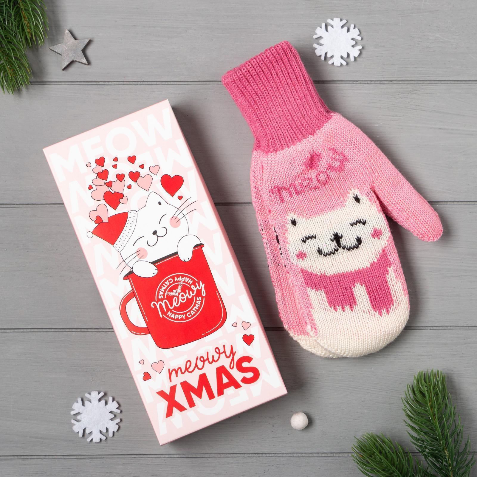 Женские варежки в подарочной коробке "Котик " р.19 5232203