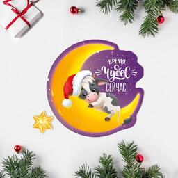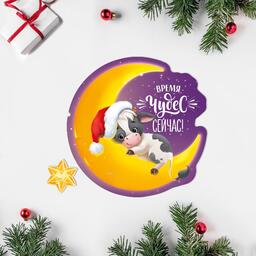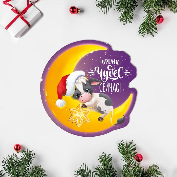 Открытка поздравительная «С Новым Годом!» телёнок и луна, 9 × 9 см 5266958