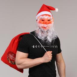 Для самого волшебного праздника в году выбирайте соответствующие атрибуты. Яркие тематические маска и мешок сделают ваш образ по-настоящему новогодним и добавят наряду карнавальности.