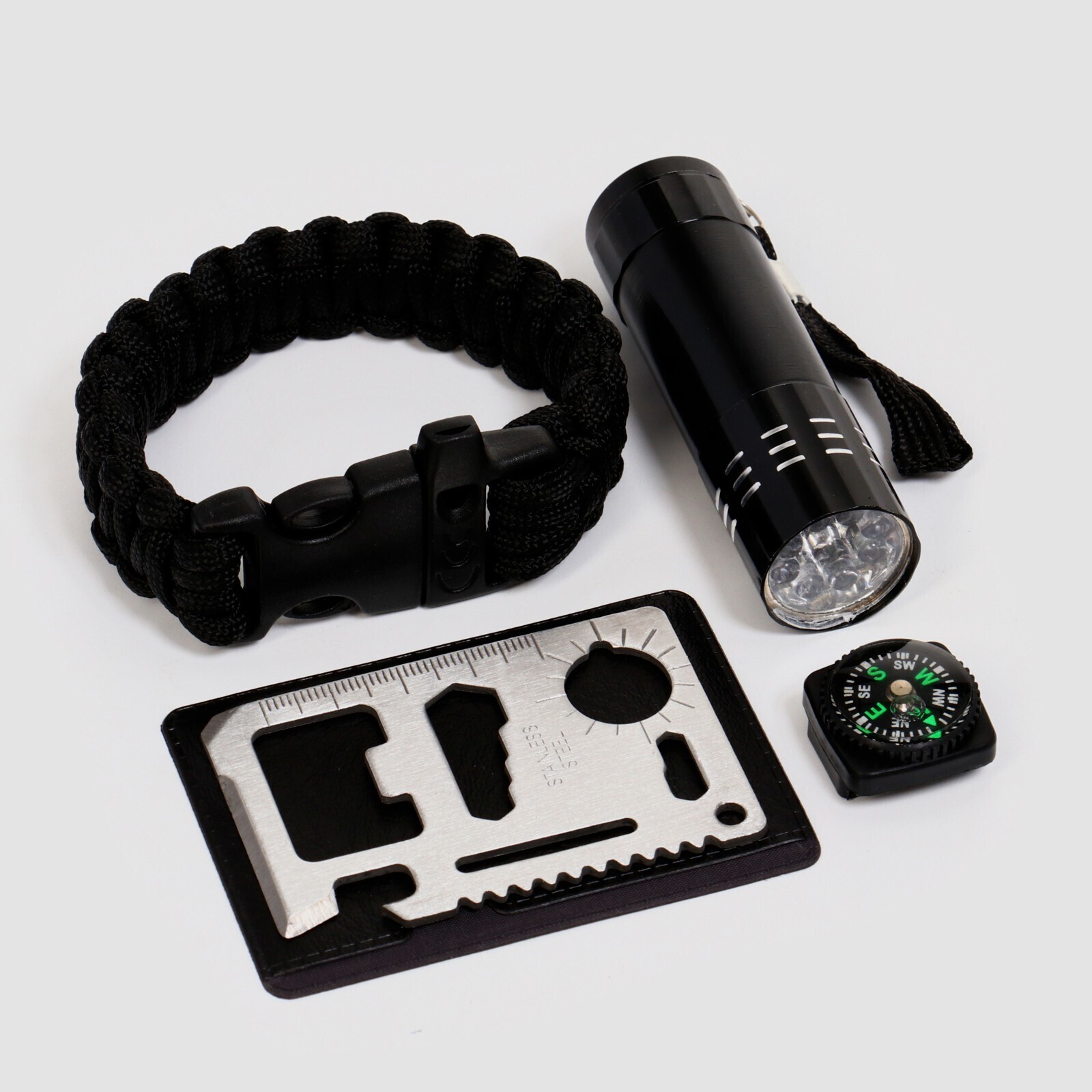 Набор для выживания 4в1 (фонарь, карта для выживания, паракорд, компас) 5087953