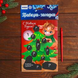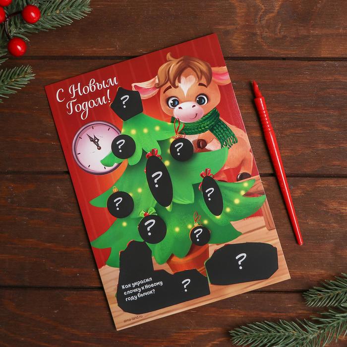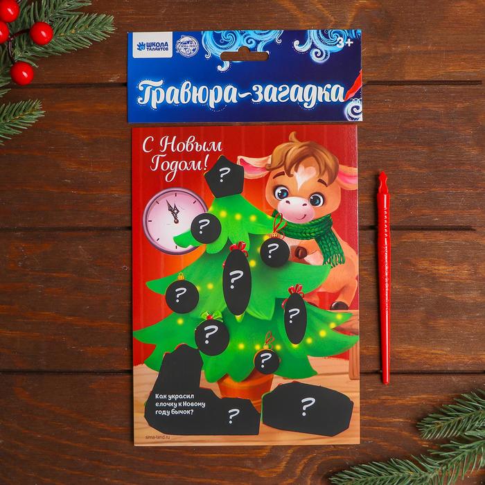 Гравюра-загадка "Бычок на елке" с цветной основой 4963040