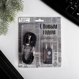 Набор штекер и кабель micro USB "С новым годом", 16,8 х 16,9 см 4999535