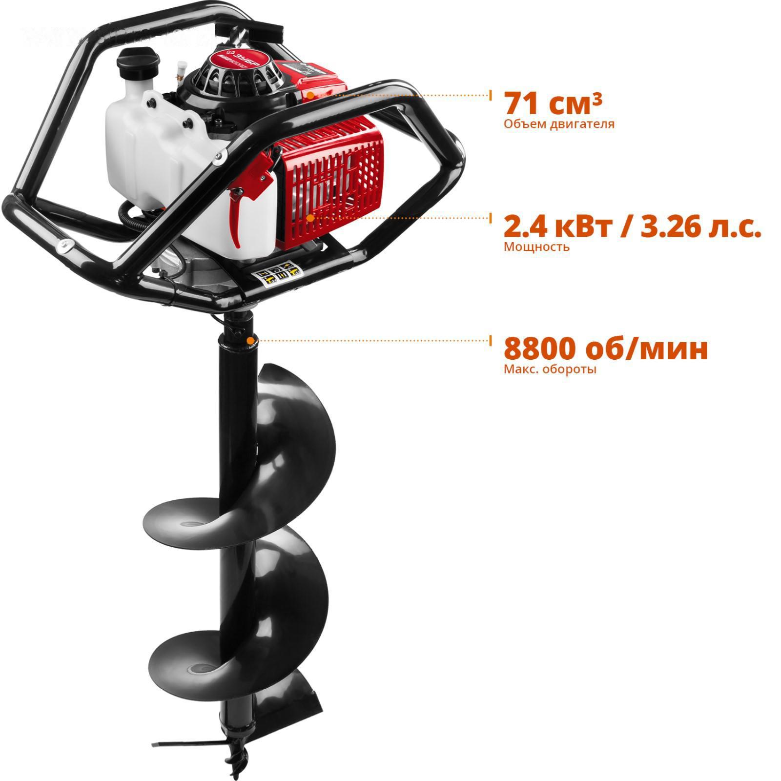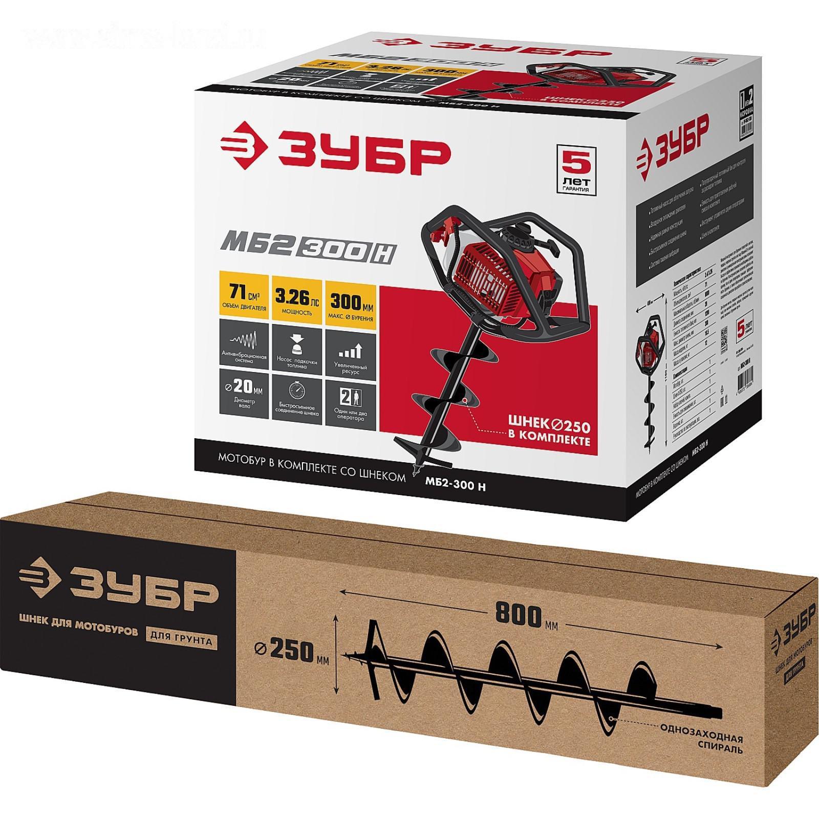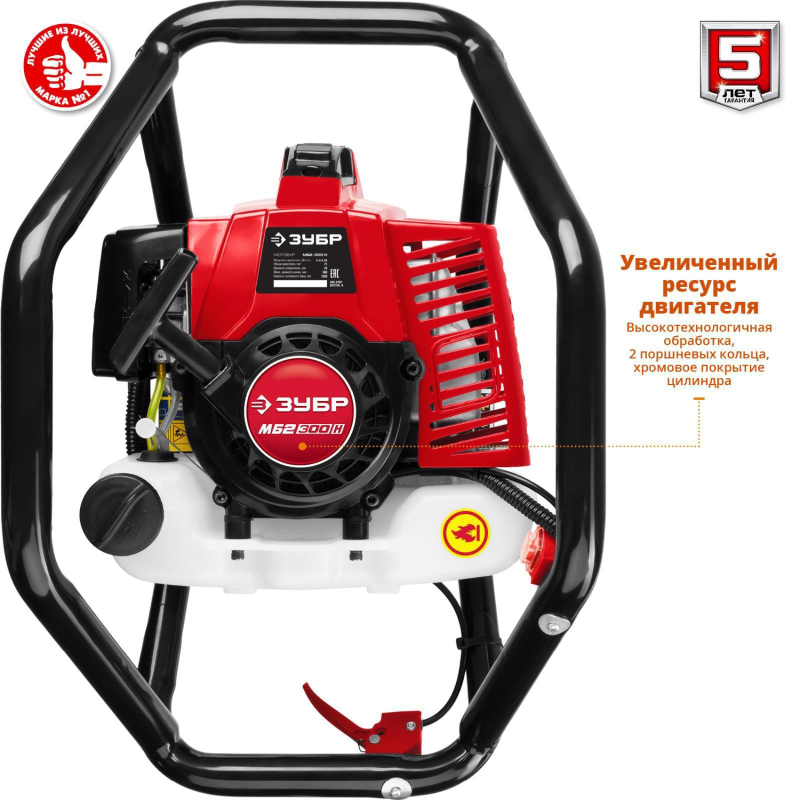 Мотобур со шнеком "ЗУБР" МБ2-300 Н, 2Т, 2.4 кВт, 71 см3, 8800 об/мин, d=20х300 мм 5385050