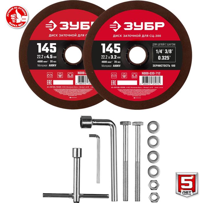 Станок заточный "ЗУБР" СЦ-300, 3000 об/мин, d=145х22.2 мм, ширина 3.2/4.5 мм, LED подсветка 538504 5385045
