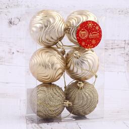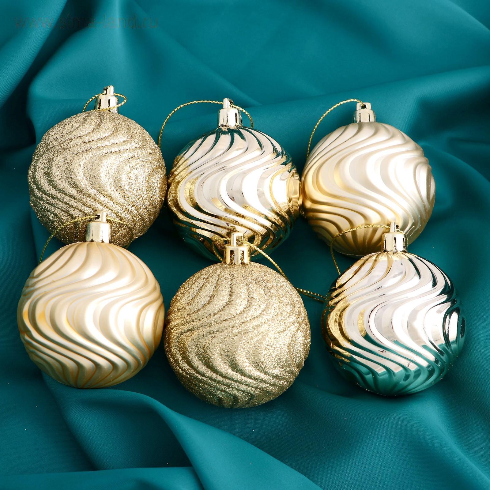 Набор шаров пластик d-6 см, 6 шт "Сияние волн" золото 5012920