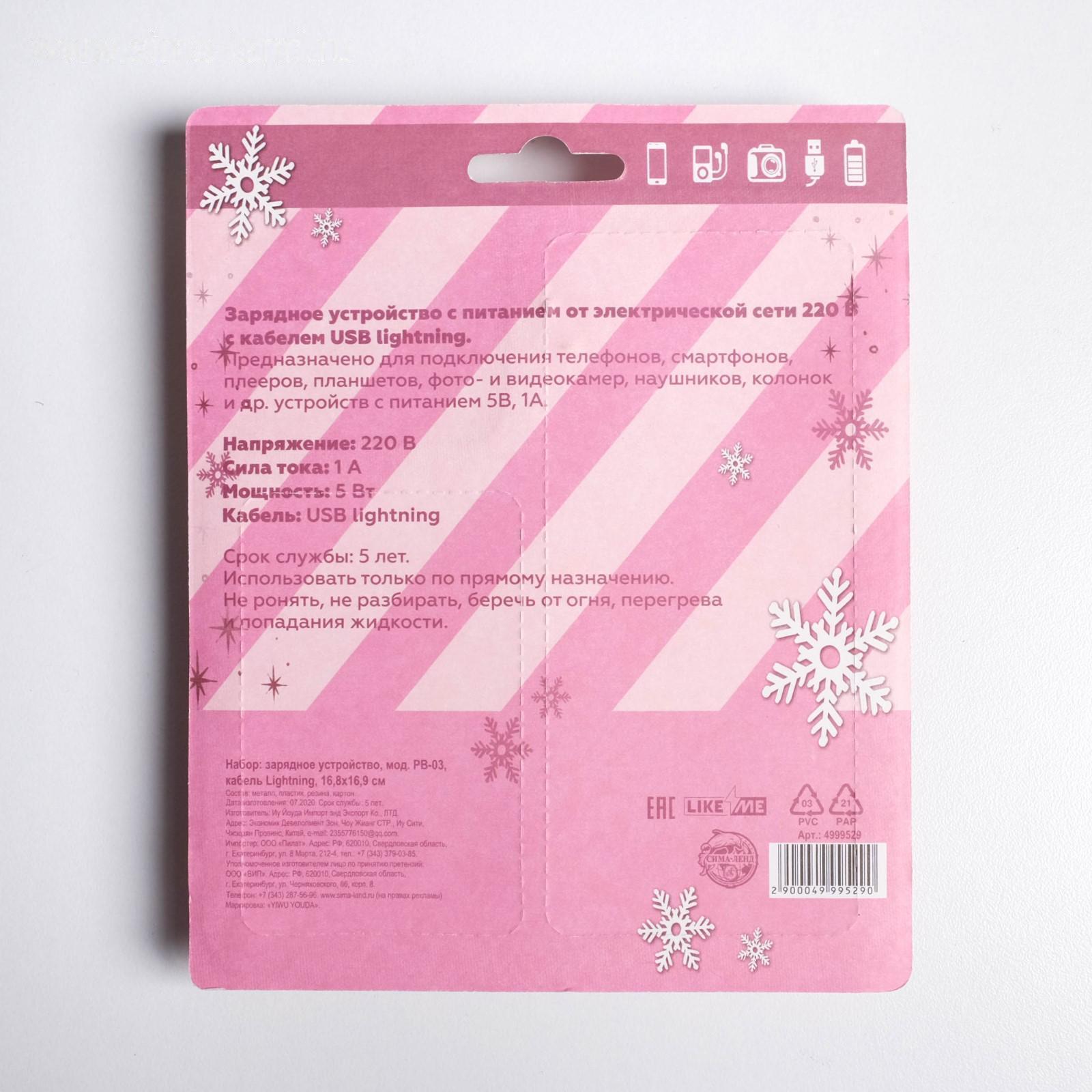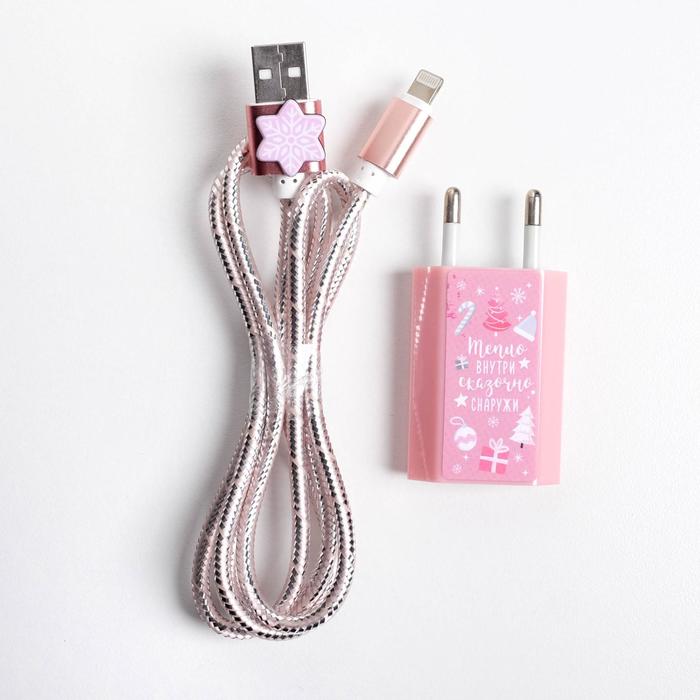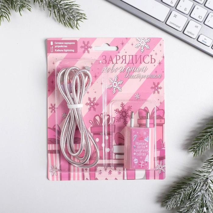 Набор штекер и кабель для Apple (Lightning) «Новогоднее настроение», 1А 4999529