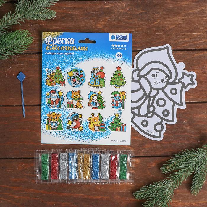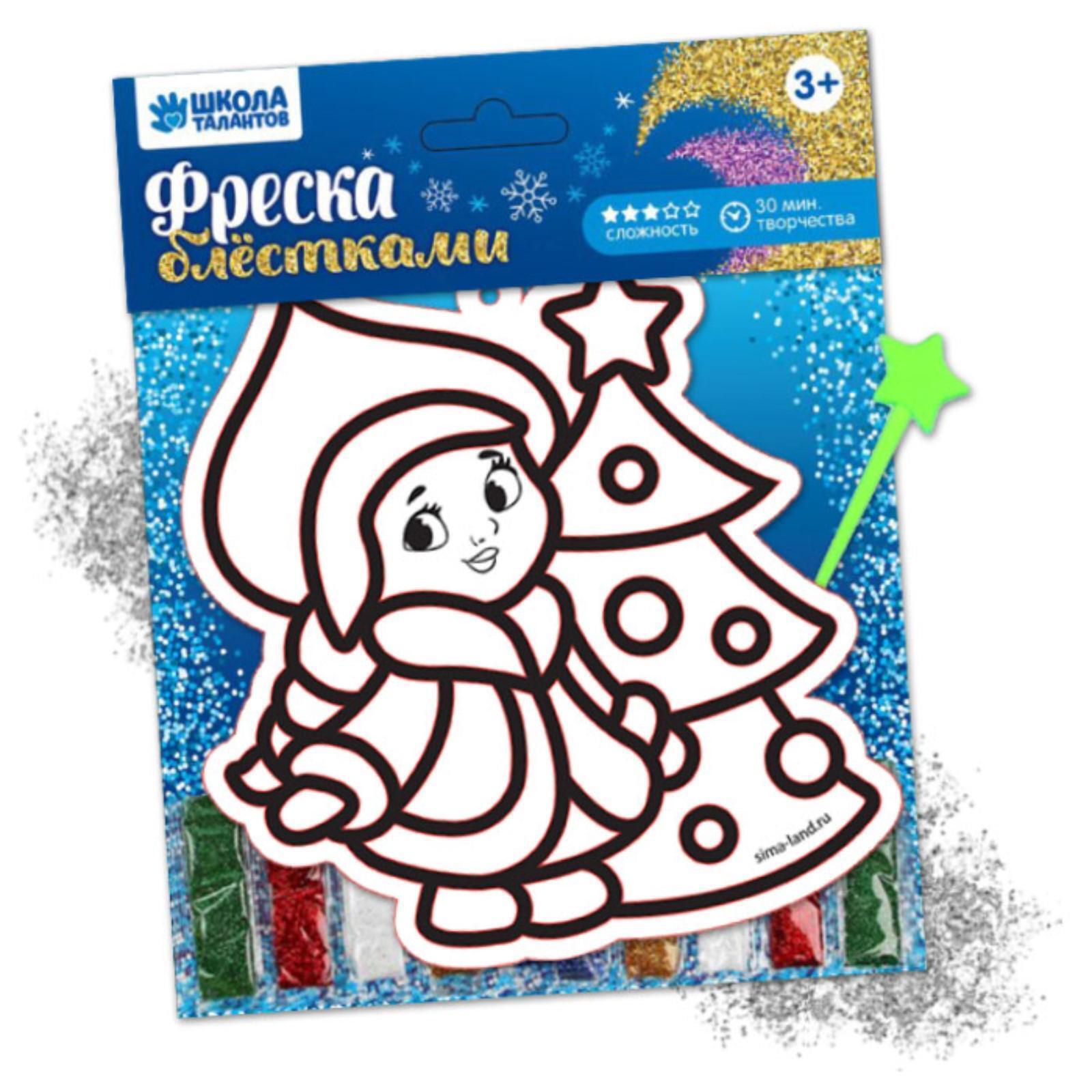 С этим волшебным набором ваш ребёнок сможет создать фигурную картину из сияющих блёсток. Фреска станет отличным украшением новогодней ёлки и объектом гордости маленького художника.
