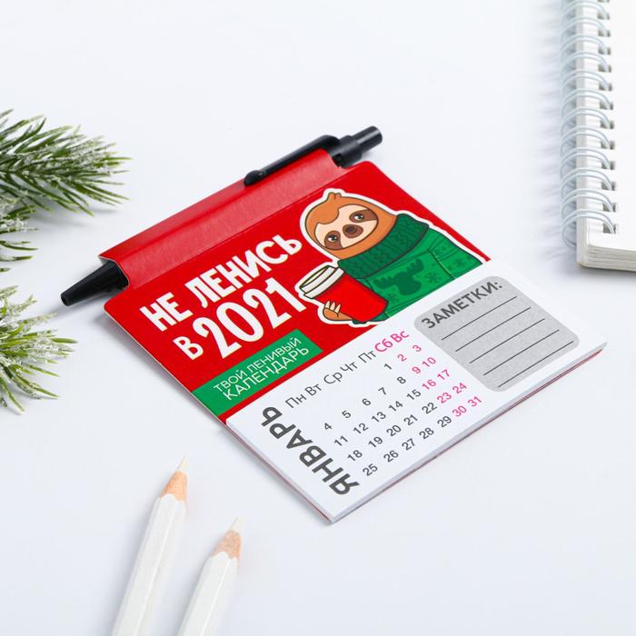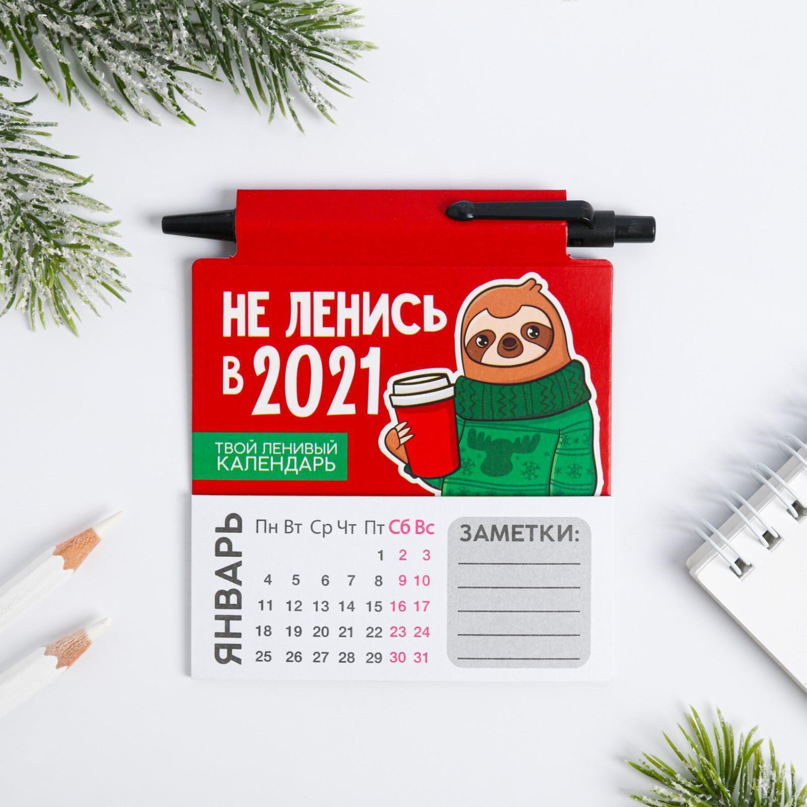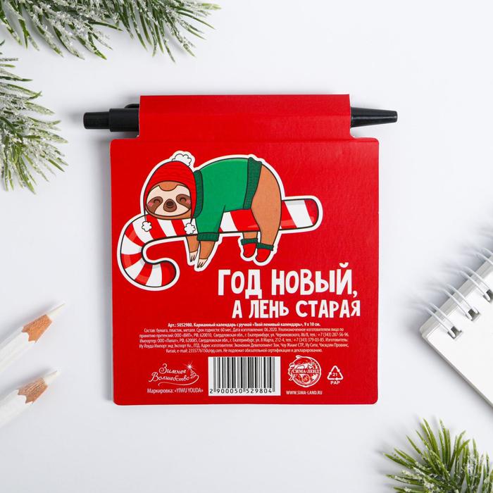 Карманный календарь с ручкой «Твой ленивый календарь», 9 х 10 см 5052980