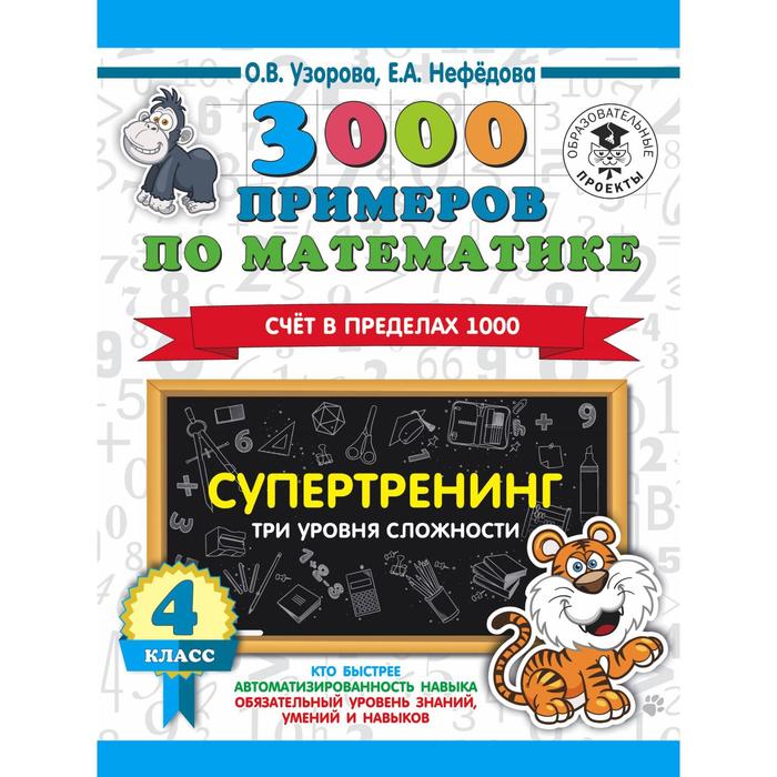 3000 примеров по математике. Супертренинг. Три уровня сложности. Счет в пределах 1000. 4 класс 539 5390368