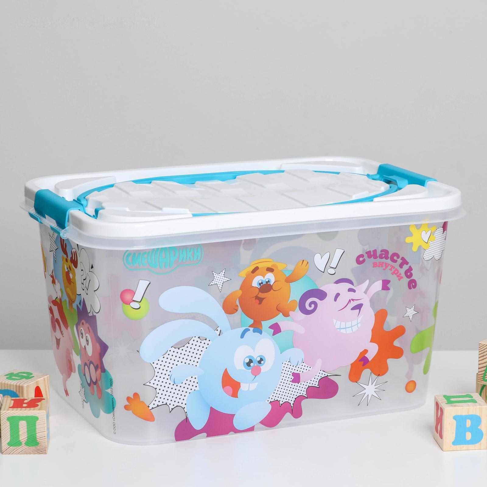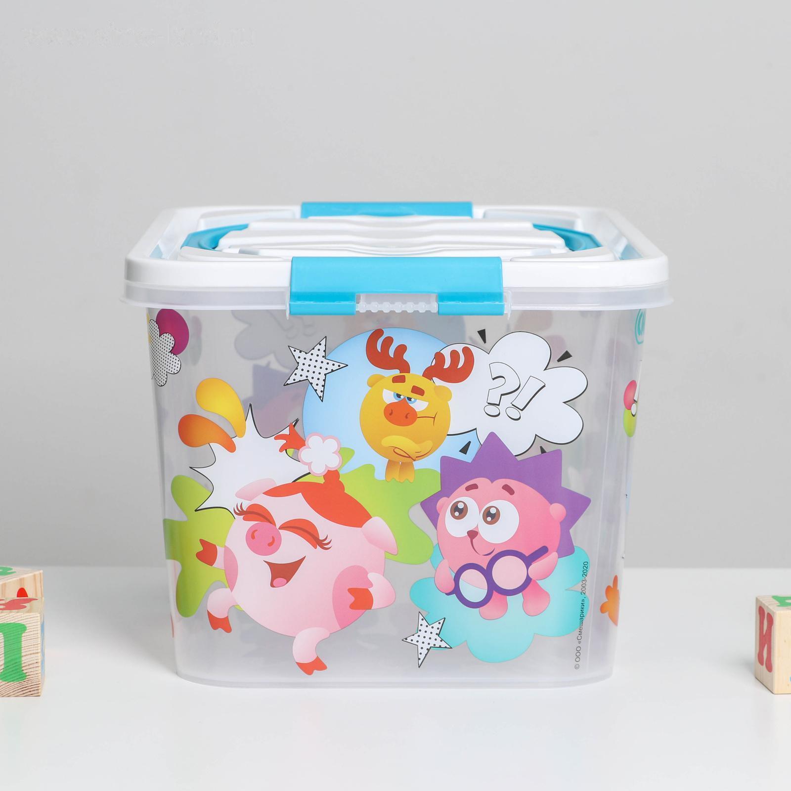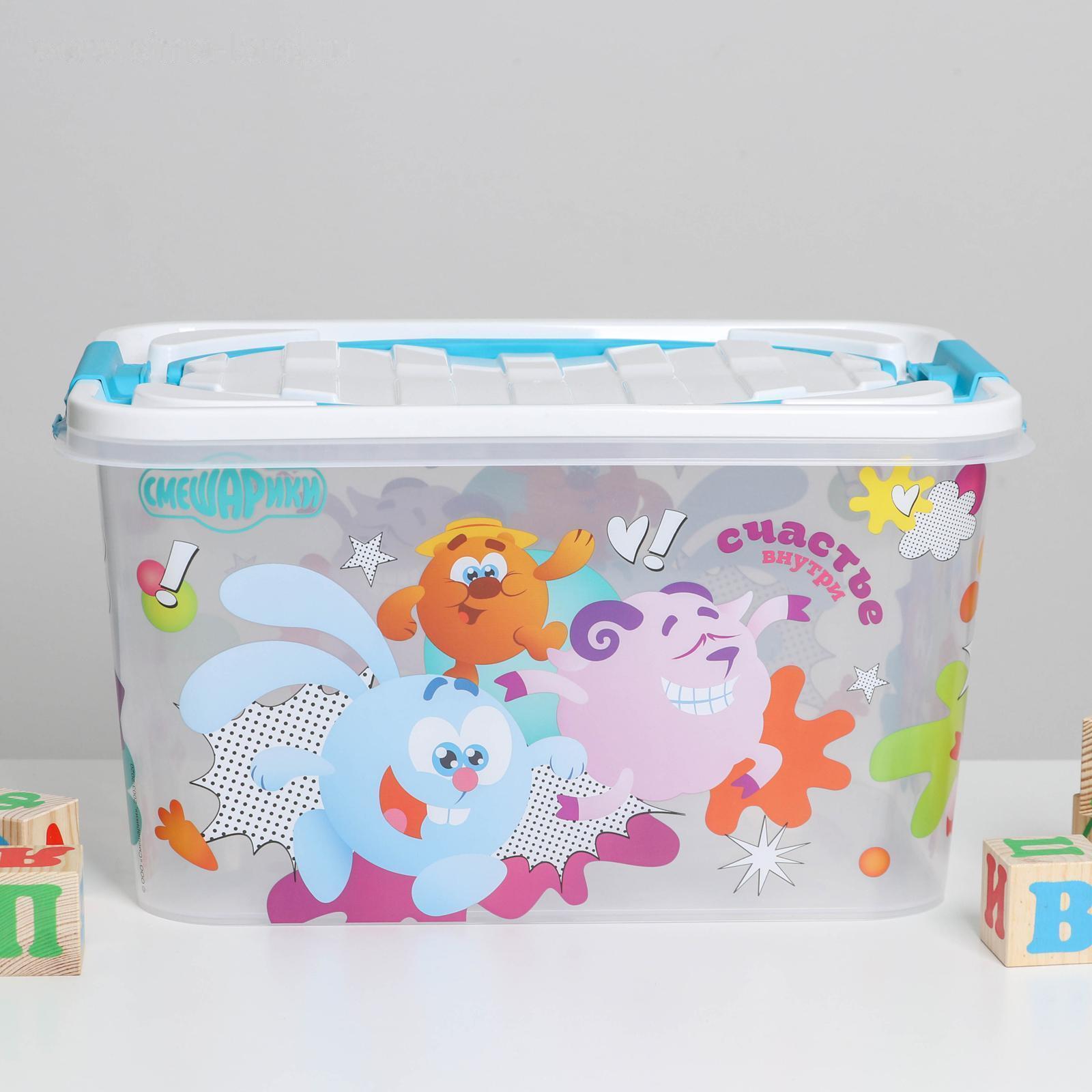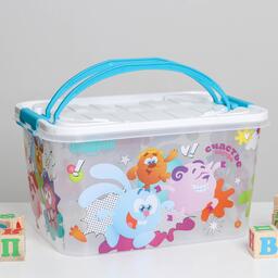 Контейнер для хранения игрушек с крышкой «Смешарики», 15 л, цвет бело-голубой 5376111
